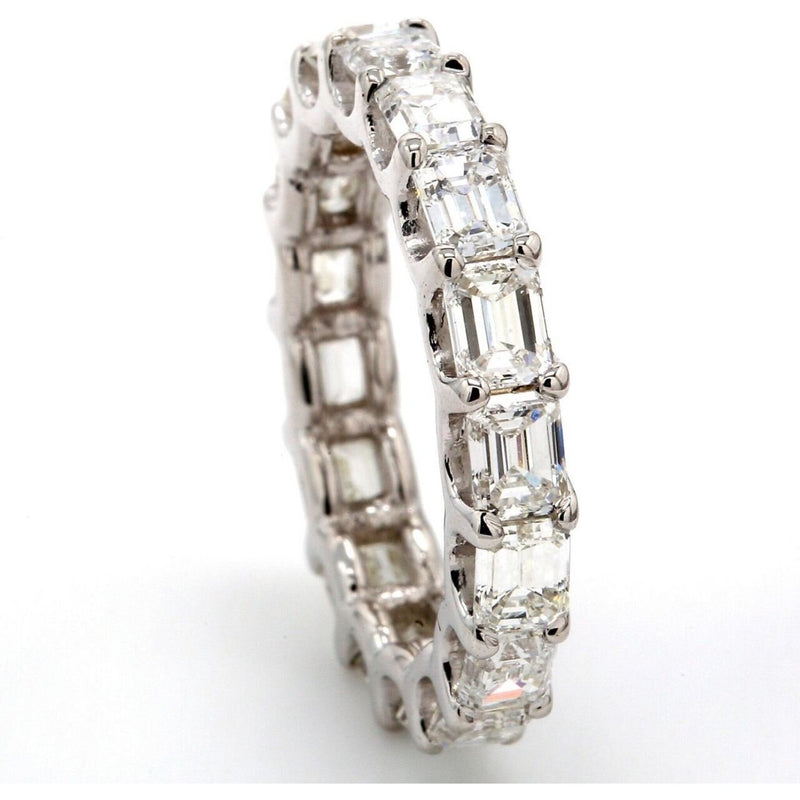 Ninacci 14K White Gold East to West Style Eternity Band with Shared U-Prong Set Emerald Cut Diamonds - 4.10 Carat Total Diamond Weight - Size 5.0