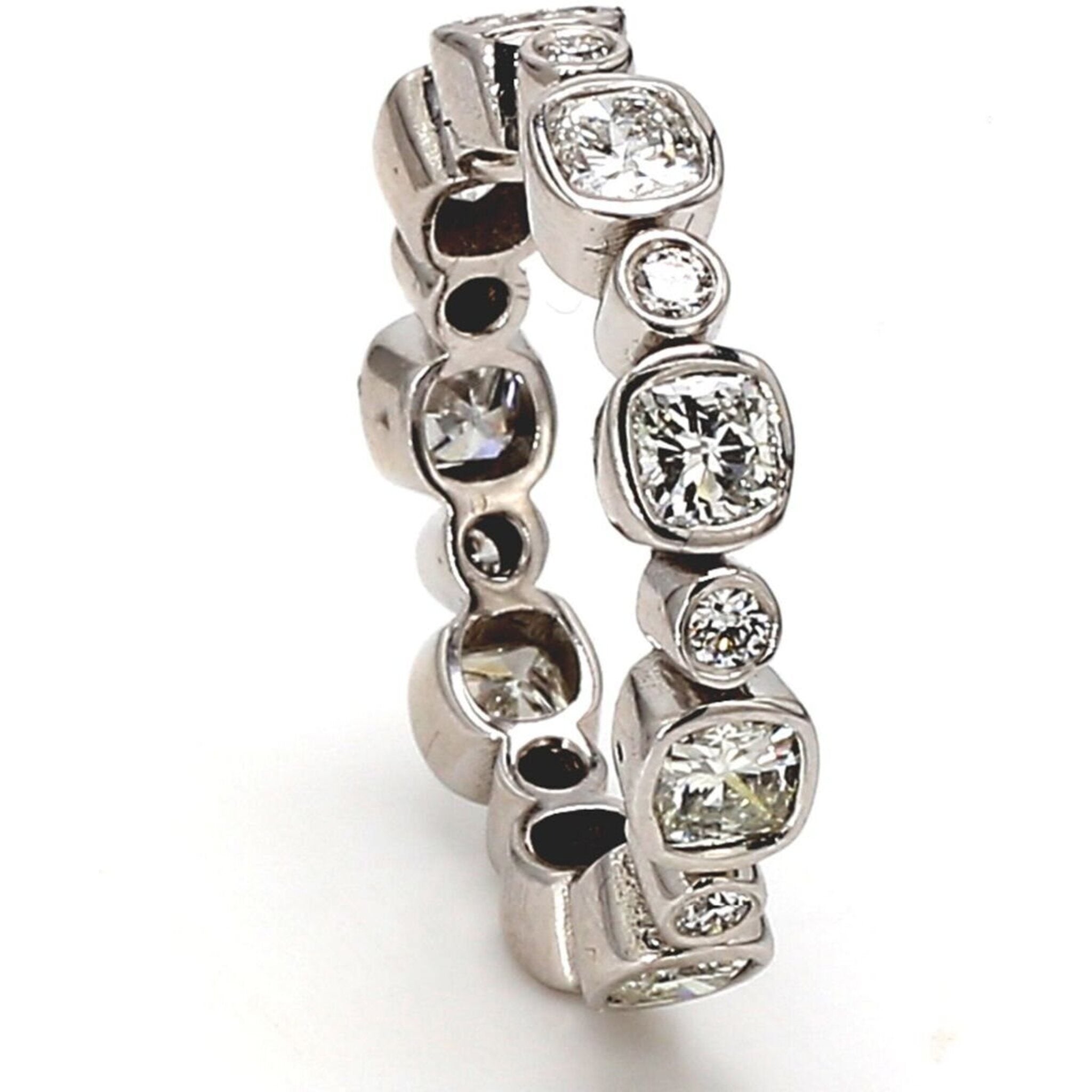 Ninacci 14K White Gold Eternity Band with Alternating Bezel Set Cushion Cut and Round Diamonds - 2.50 Carat Total Diamond Weight - Size 8.5