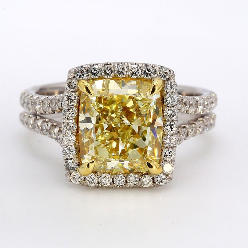 Ninacci 14K White Gold Fancy Light Yellow Diamond Halo Split-Shank Ring - 5.05 Carat Total Diamond Weight - Size 6.75