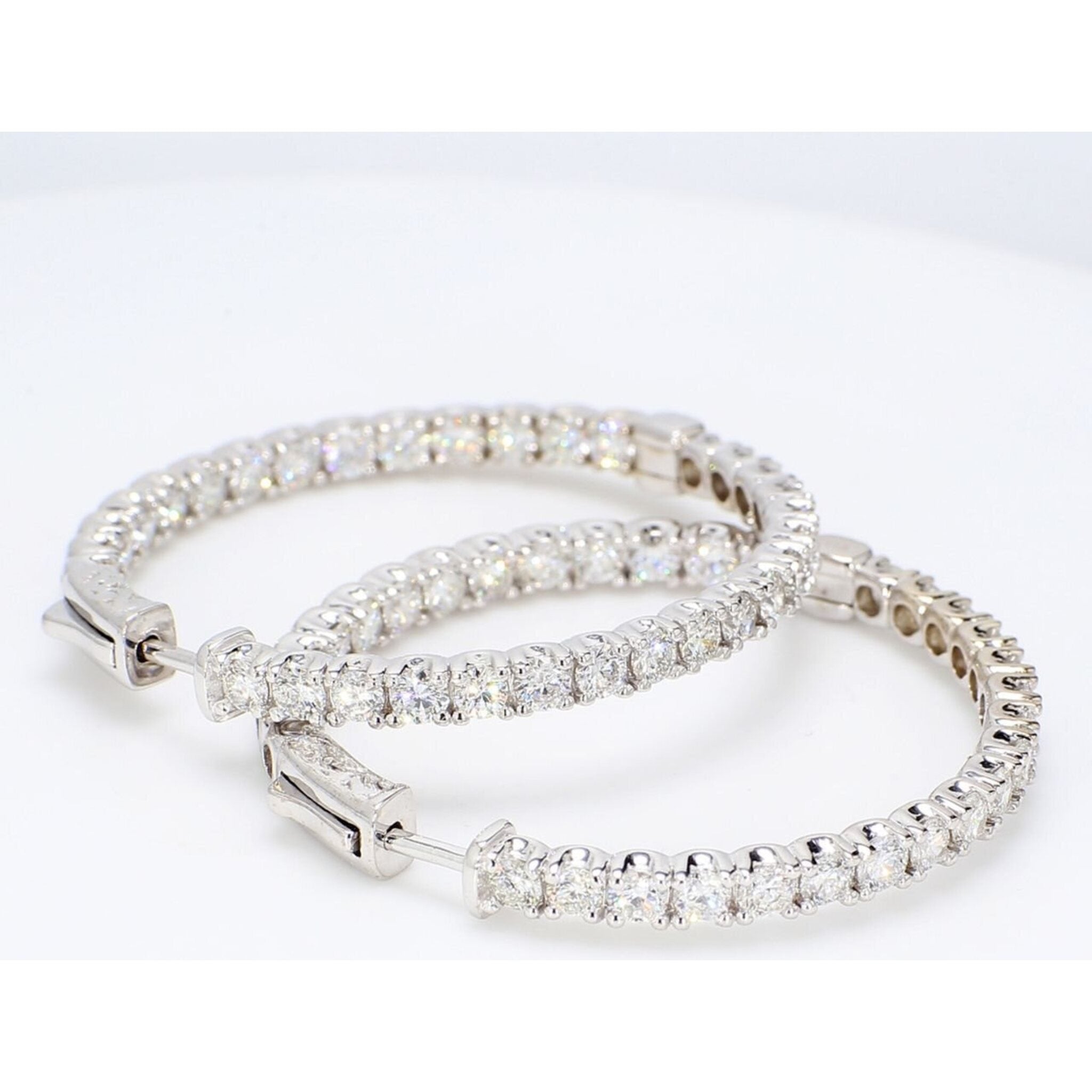 Ninacci 14K White Gold Inside Out Hoop Earrings with 6.86 Carats Round Diamonds