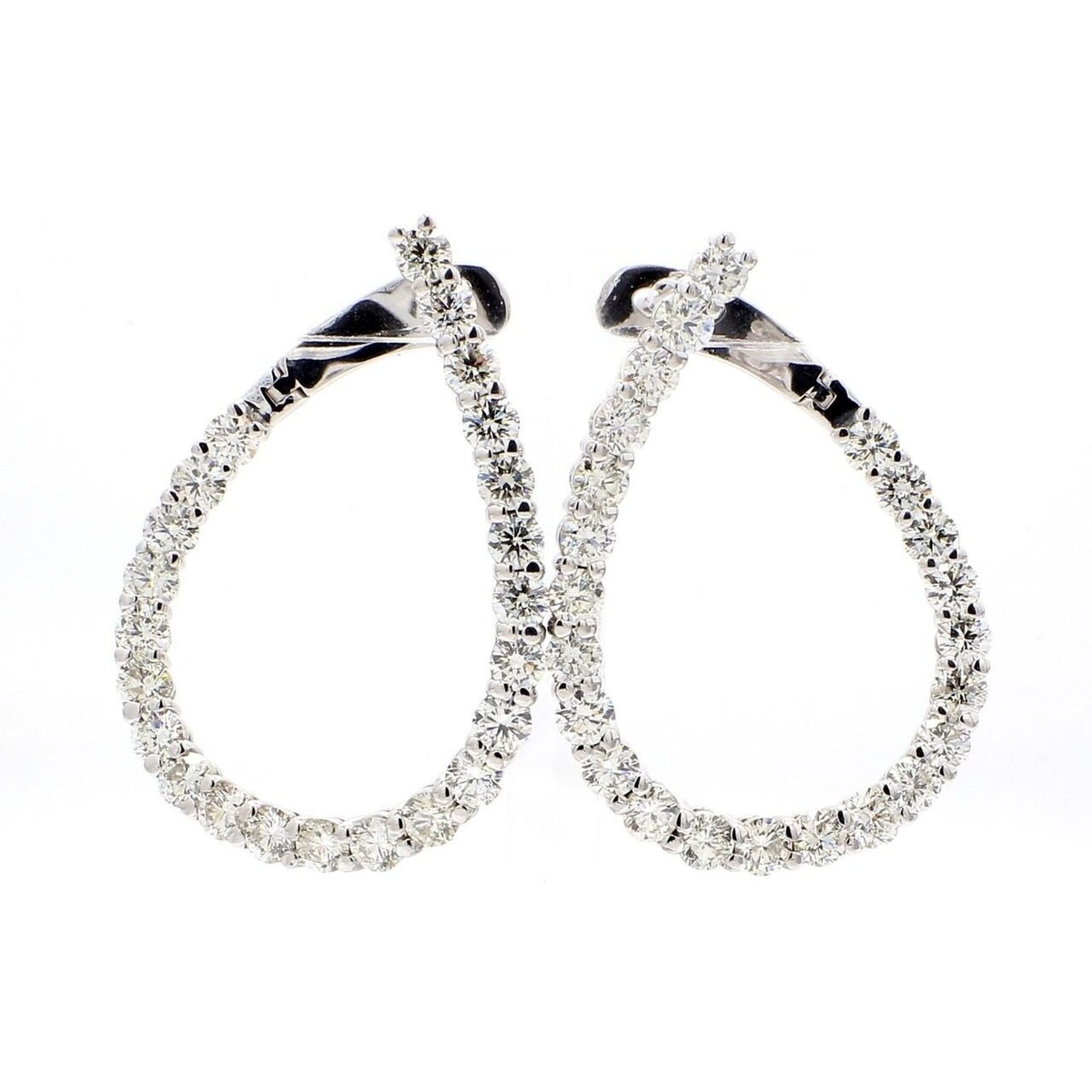 Ninacci 14K White Gold J-Shaped Huggy Earrings with 46 Round Diamonds - 4.59 Carat Total Diamond Weight