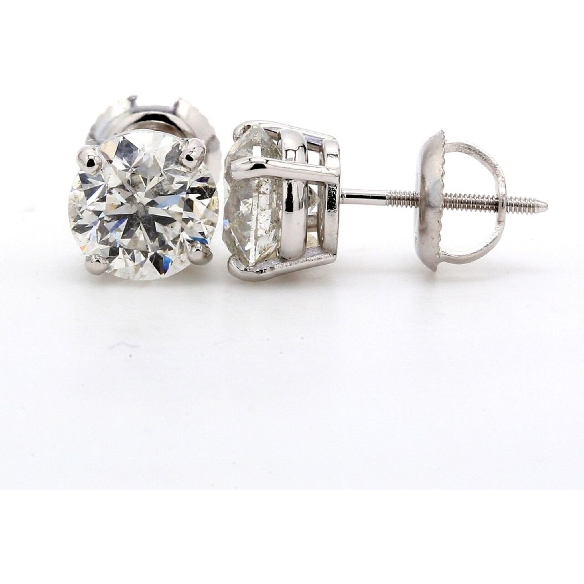 Ninacci 14K White Gold Screw Back Stud Earrings with 3.00 Carats H-I/SI1 Round Diamonds