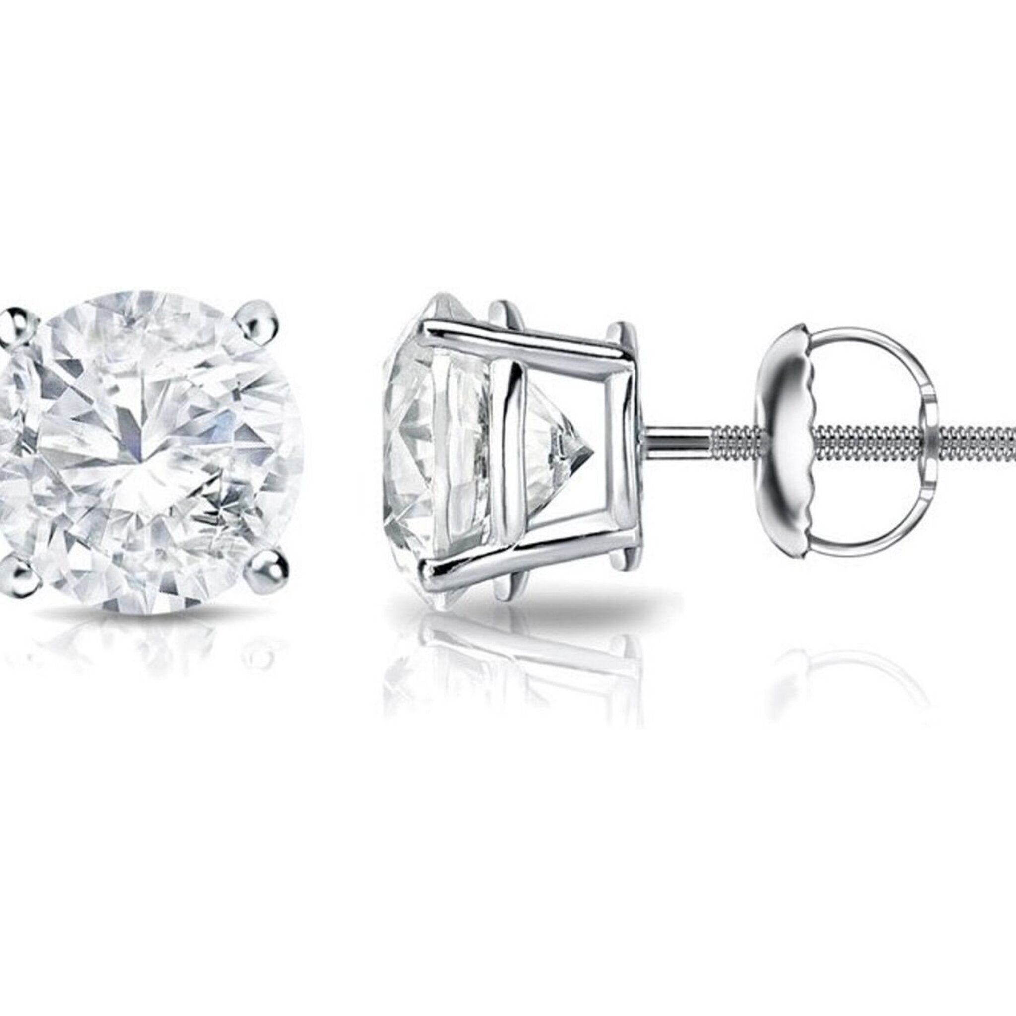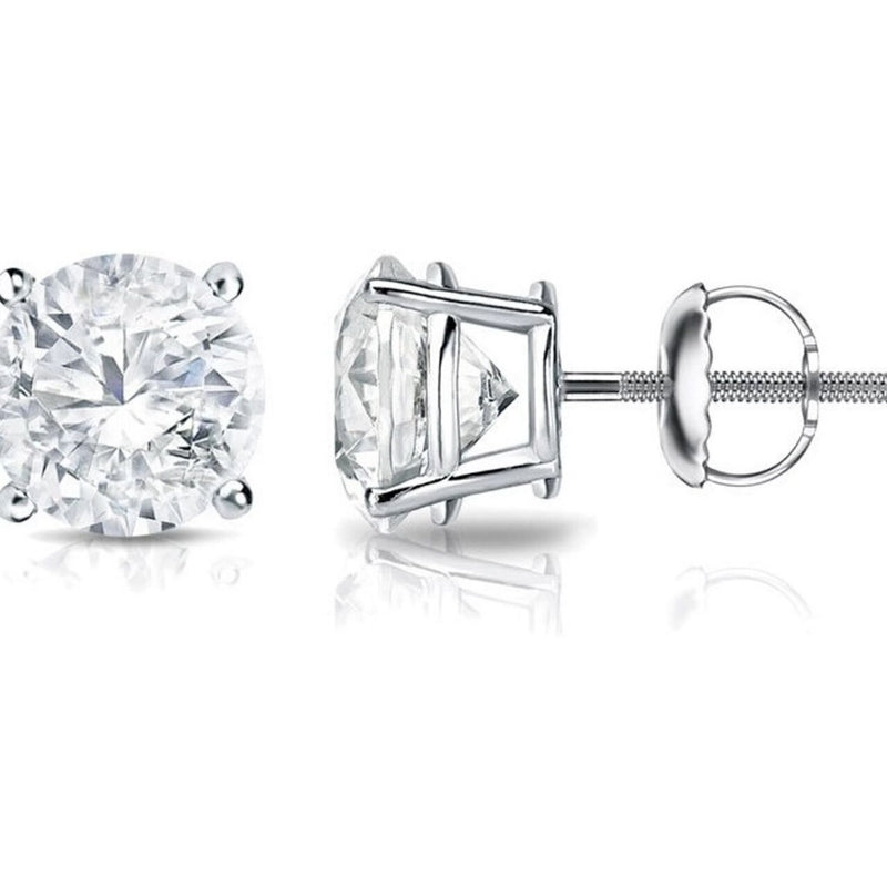 Ninacci 14K White Gold Screw Back Stud Earrings with Prong Set USA Certified I/SI1-SI2 Round Diamonds - 3.01 Carat Total Diamond Weight