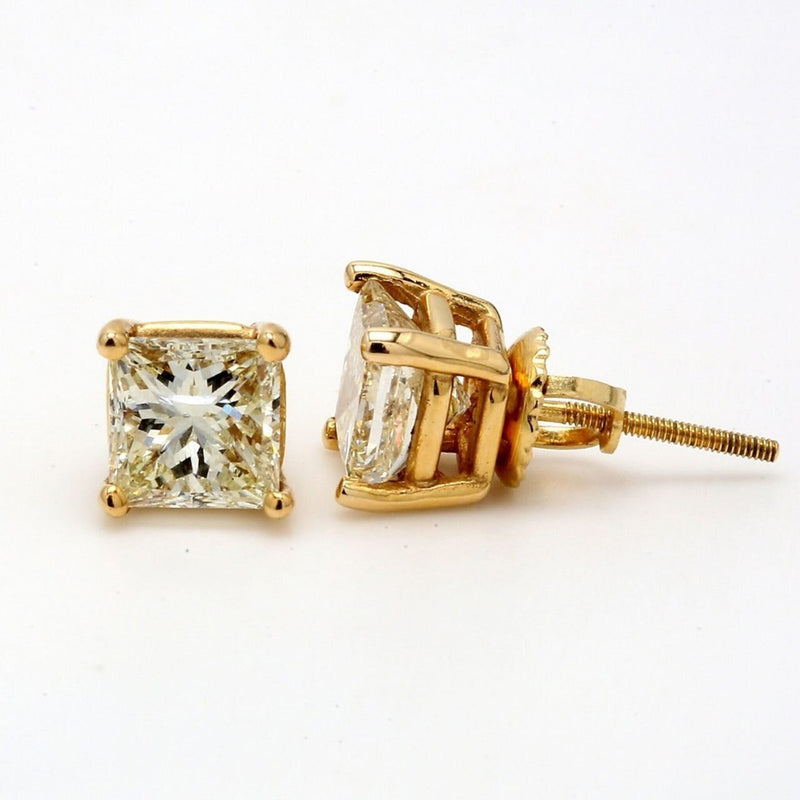 Ninacci 14K Yellow Gold 2.18 Carats Princess Cut Diamond Screw Back Stud Earrings