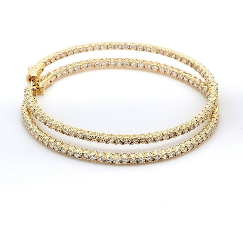 Ninacci 14K Yellow Gold 2.25" Inside Out Hoop Earrings with 138 Round Diamonds - 4.57 Carat Total Diamond Weight
