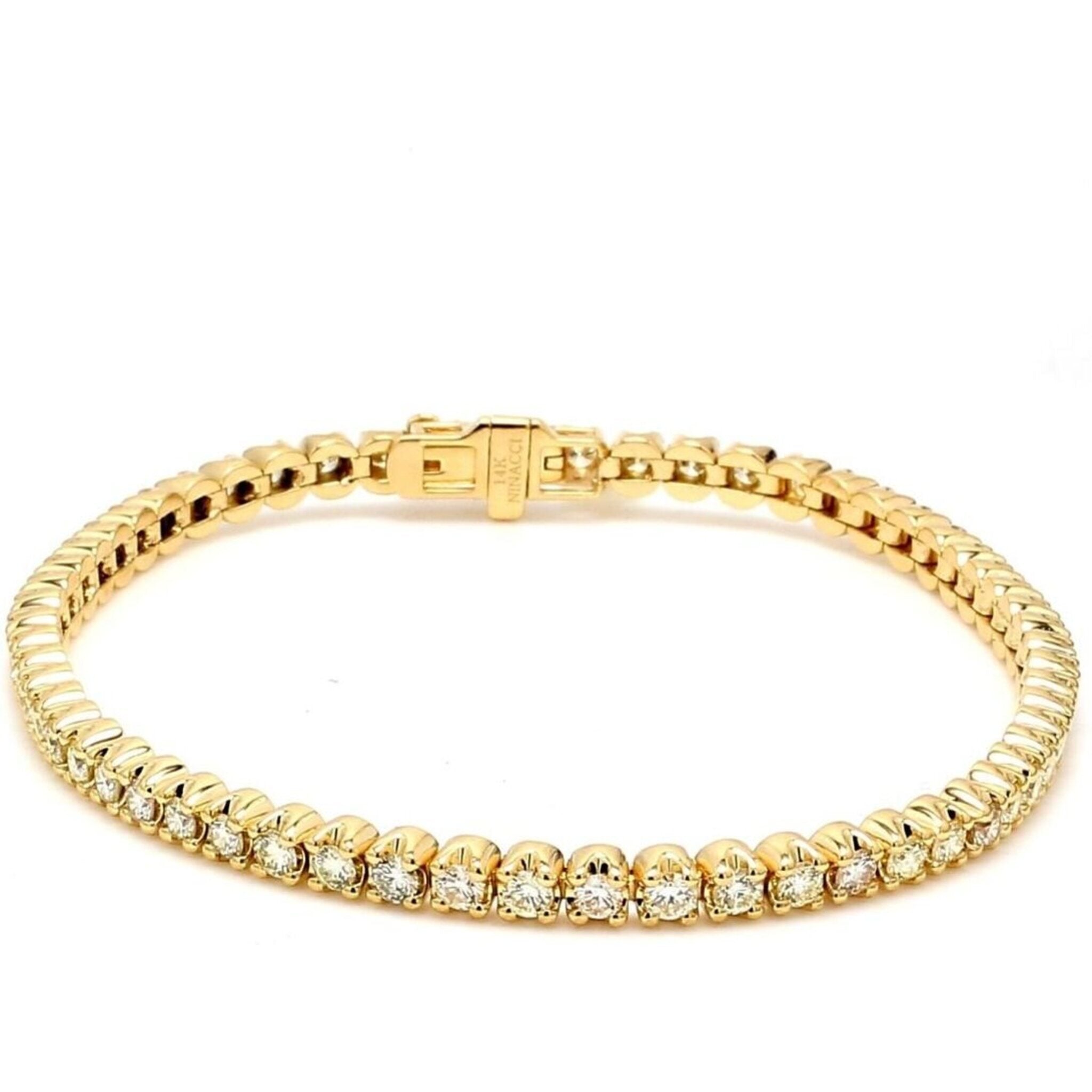 Ninacci 14K Yellow Gold 7" Tennis Bracelet with 7.40 Carats Round Diamonds