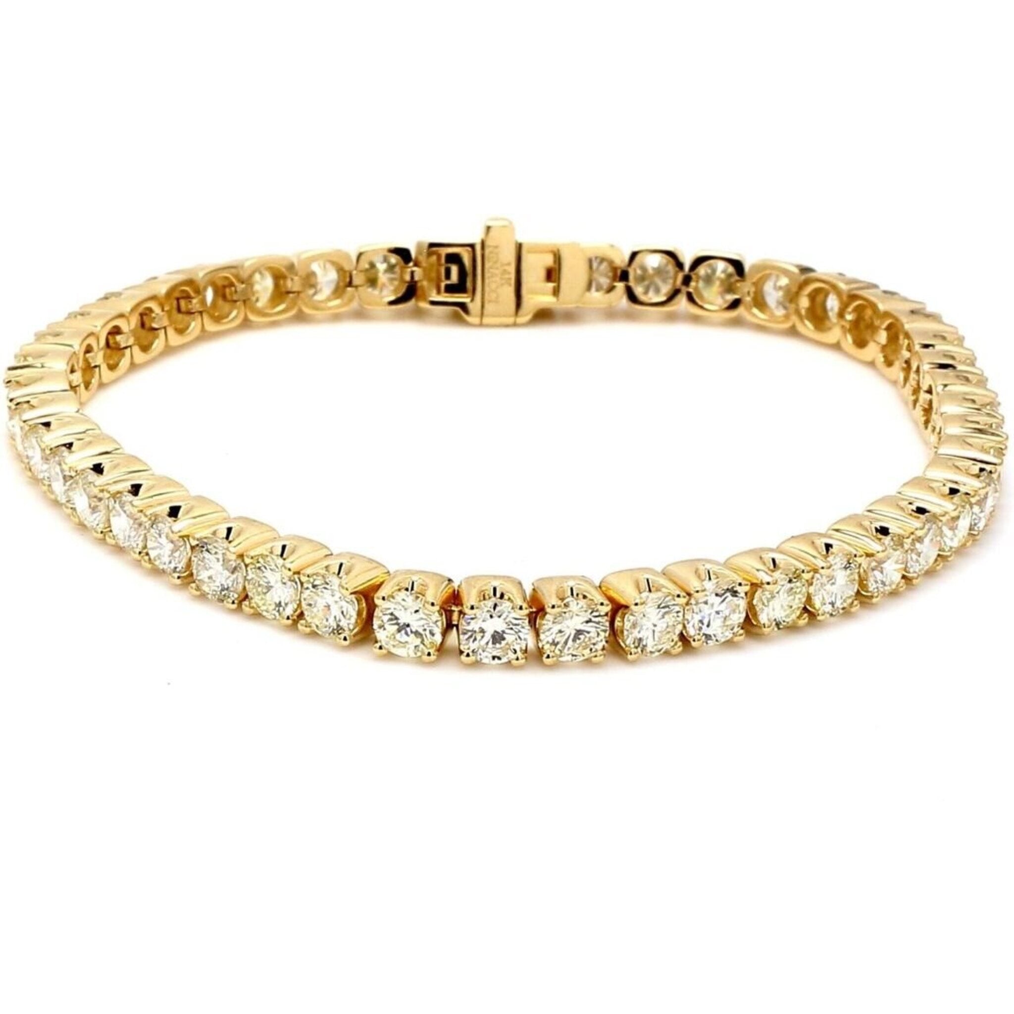 Ninacci 14K Yellow Gold 7" Tennis Bracelet with Crown Head Prong Set Round Diamonds - 8.88 Carat Total Diamond Weight
