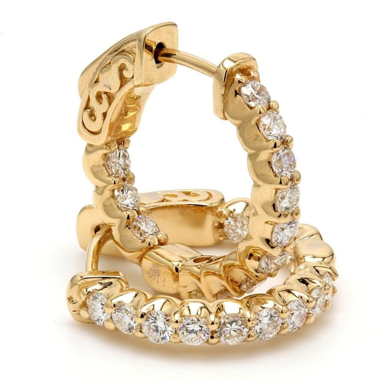 Ninacci 14K Yellow Gold Inside Out Hoop Earrings with 3.80 Carats Round Diamonds - Elegance Redefined