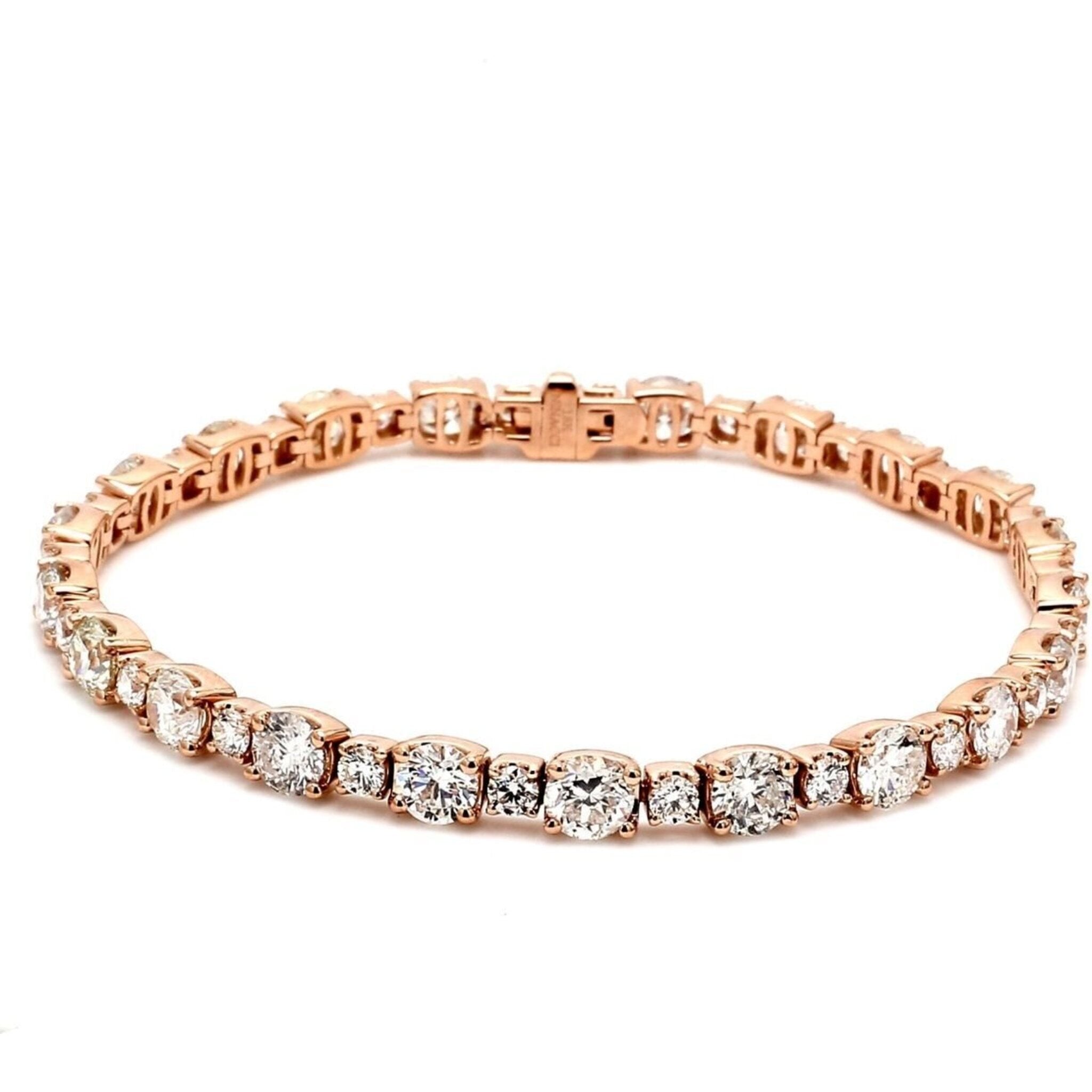 Unlock the utopia of uniqueness with our 7" Tennis Bracelet in 18K Rose Gold, a radiant testament to enduring elegance. Prong-set with alternating-sized round diamonds, totaling a dazzling 9.83 carats, this bracelet is not just an accessory; it's an expression of sophistication and style.