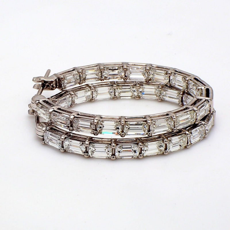Ninacci 18K White Gold 1" Inside Out Hoop Earrings with 6.04 Carats Emerald Cut Diamonds