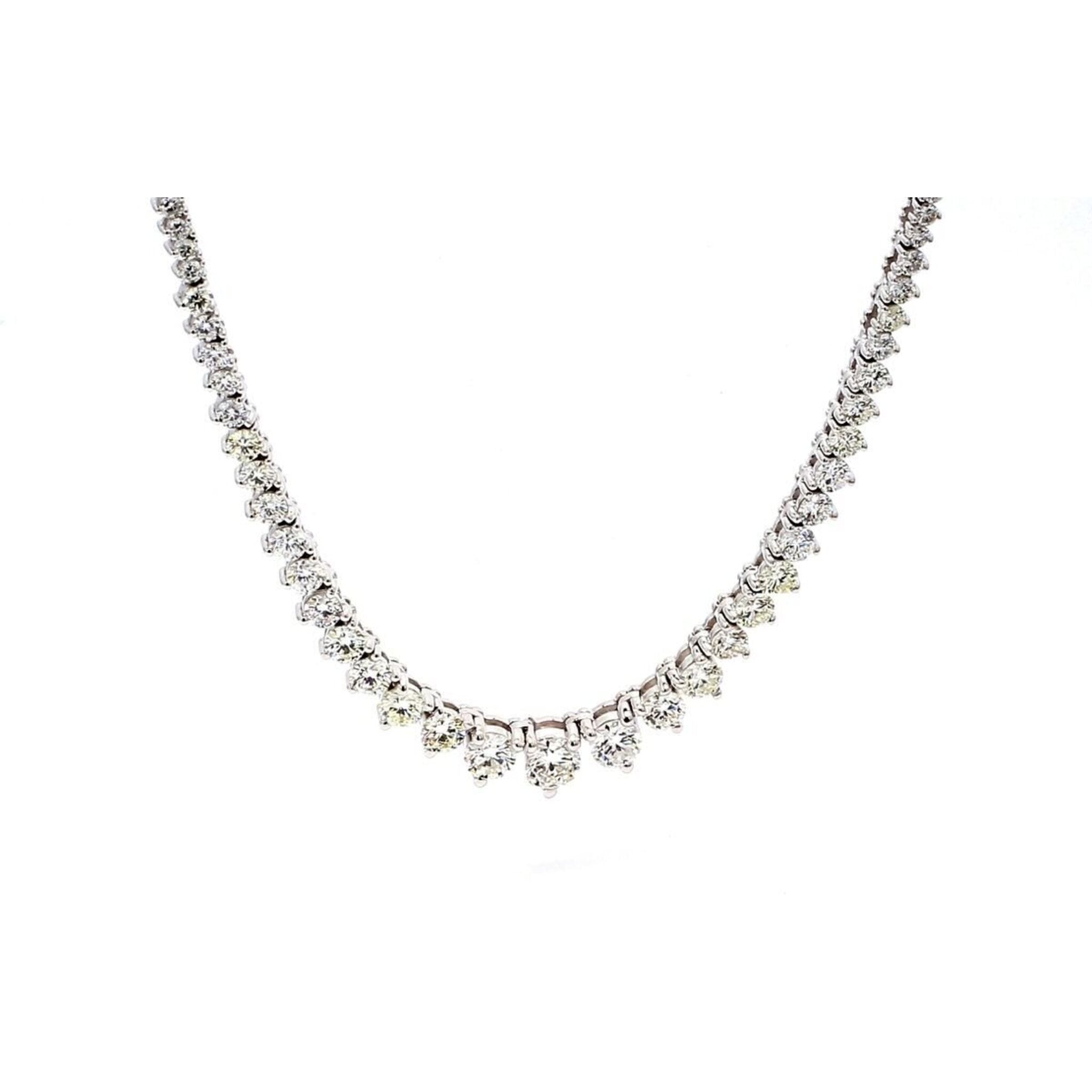 Jet-set in the jungle of jewels with this exquisite Ninacci 18K White Gold Graduating Half-Way Tennis Necklace! Picture yourself wearing this dazzling piece, adorned with 193 round diamonds, totaling a remarkable 5.14 carats. The 18-inch length provides the perfect balance of elegance and versatility, making it ideal for any occasion.