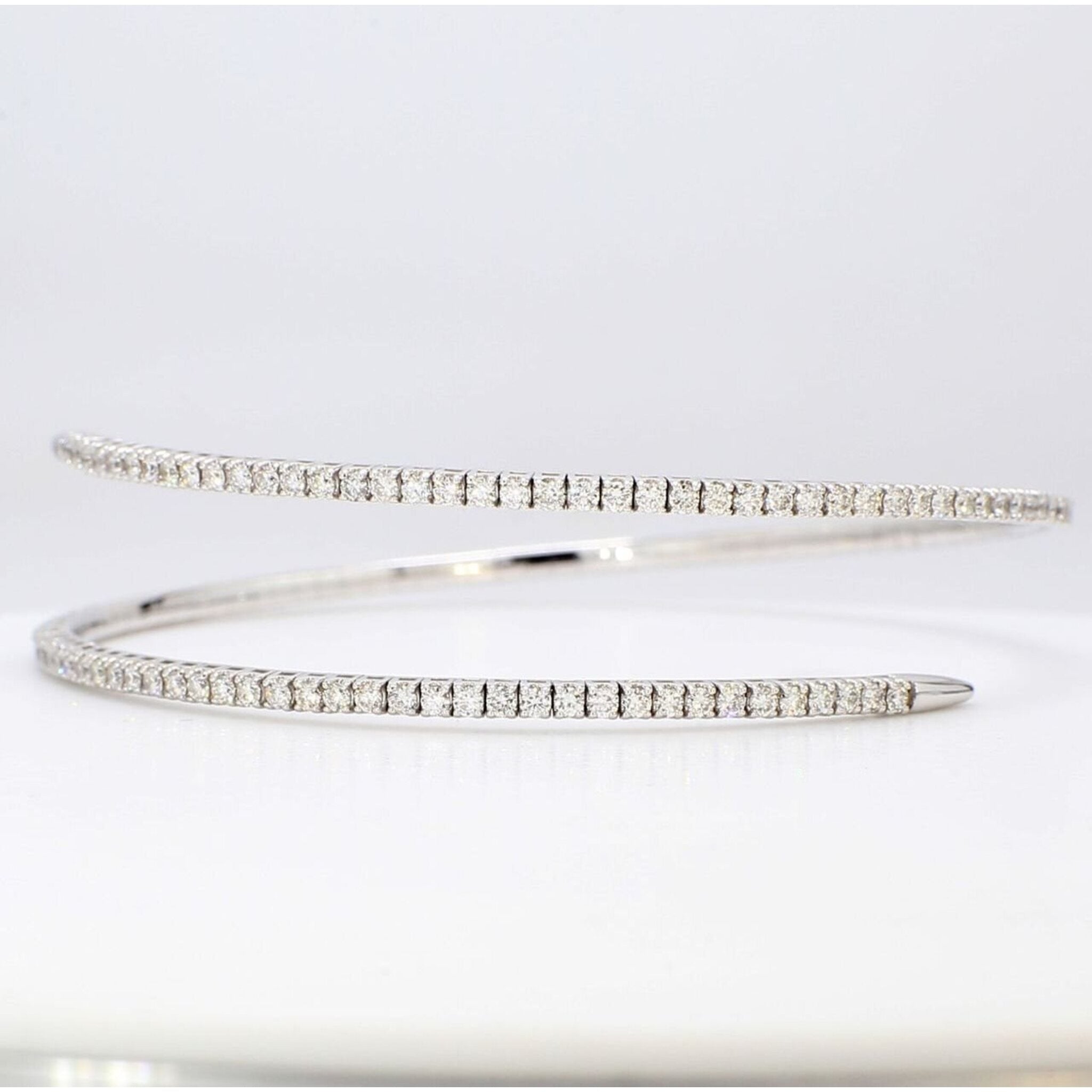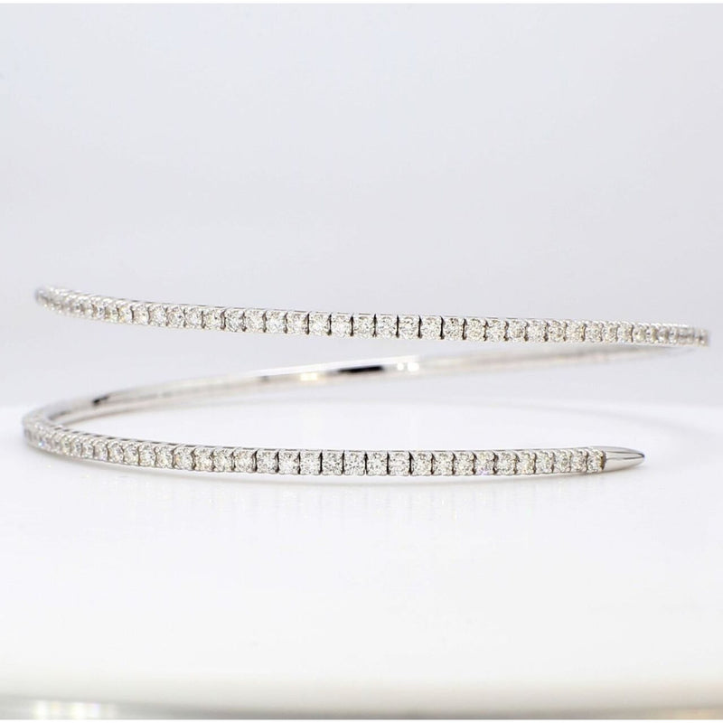 Ninacci 18K White Gold Flexible Bangle with 4-Prong Set Round Diamonds - 2.28 Carat Total Diamond Weight