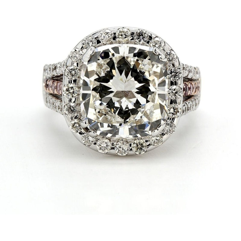 What sets this ring apart is the exquisite embrace of pre-set white and pink round diamonds, accentuating the center stone's ethereal beauty. This symphony of sparkling gems culminates in a total weight of 6.36 carats, creating an awe-inspiring aura of grace and sophistication. The delicately crafted halo design adds a touch of celestial charm, making this piece a symbol of eternal devotion and an ideal choice for an engagement ring, bridal adornment, or a fashion statement that exudes confidence and allure.