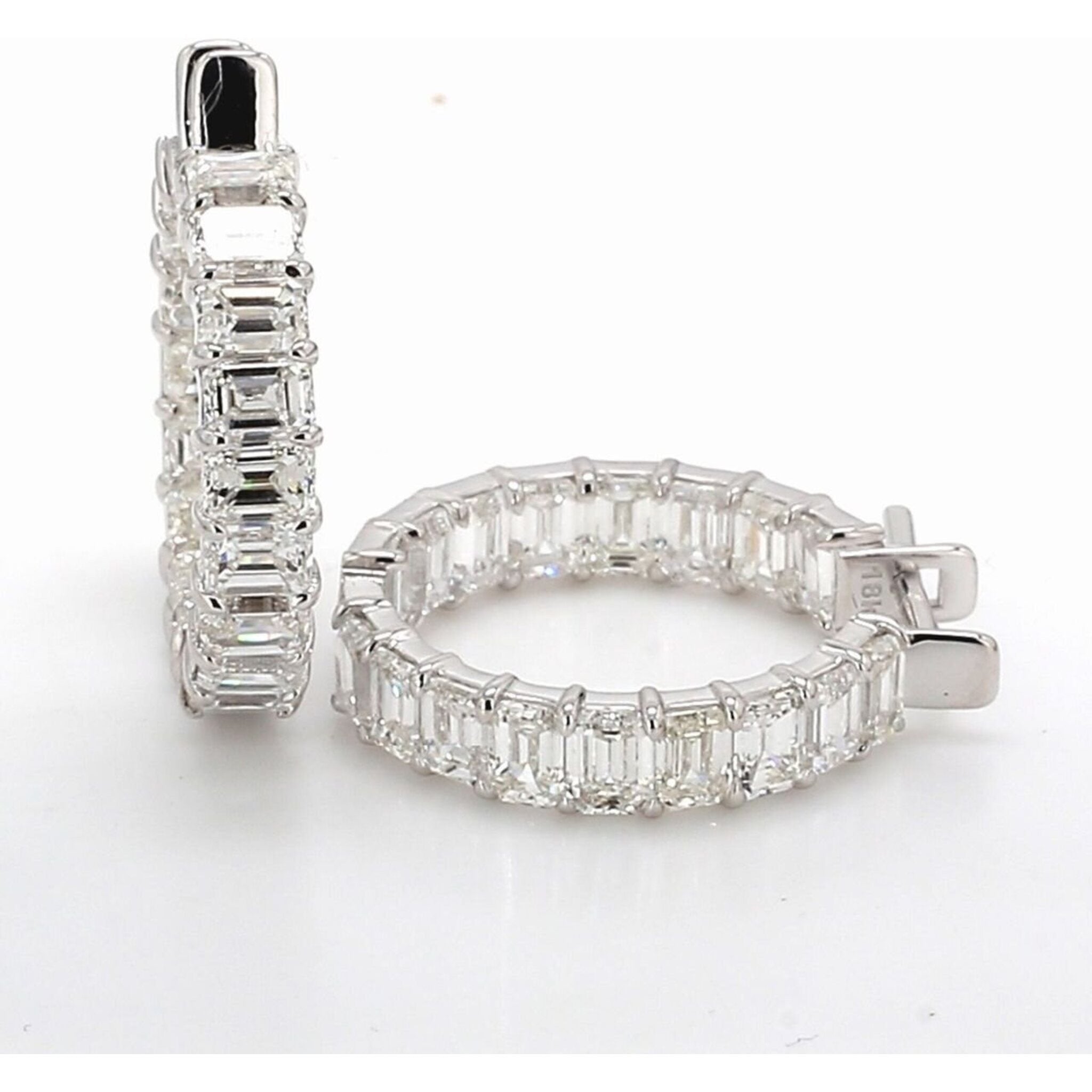 Ninacci 18K White Gold Inside Out Hoop Earrings with 34 Emerald Cut Diamonds - 6.20 Carat Total Diamond Weight