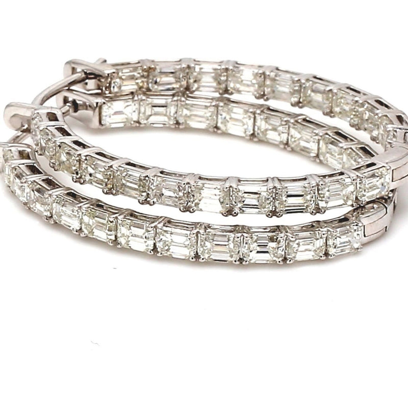 Ninacci 18K White Gold Inside Out Hoop Earrings with 8.85 Carats Emerald Cut Diamonds