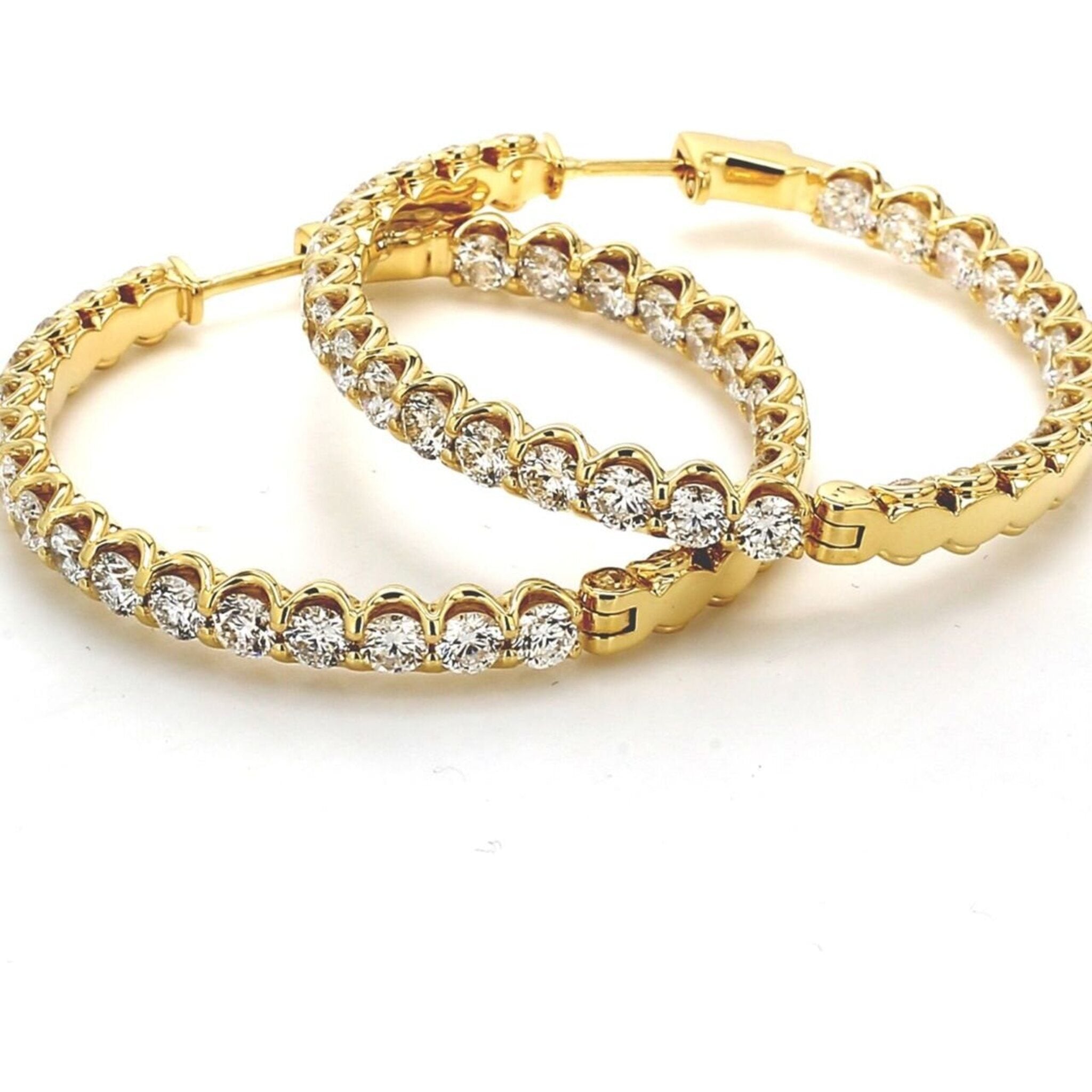 Ninacci 18K Yellow Gold 1.50" Inside Out Hoop Earrings with U-Prong Set Round Diamonds - 9.52 Carat Total Diamond Weight