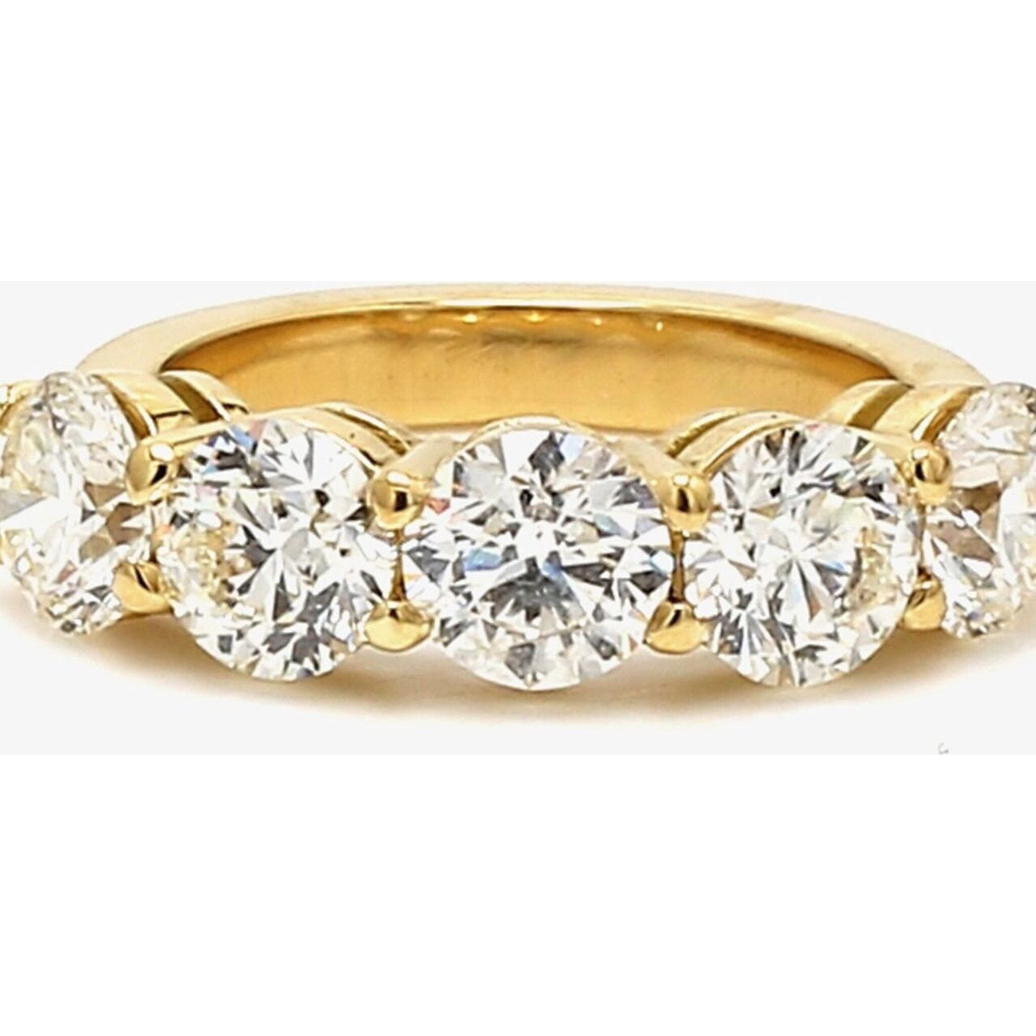 Discover the magic of timeless elegance with our 5-stone band in 18K Yellow Gold. This exquisite piece features basket prong-set round diamonds with a total weight of 3.51 carats. Its size 6.25 makes it a perfect fit for your finger, adding a touch of sophistication to any occasion.