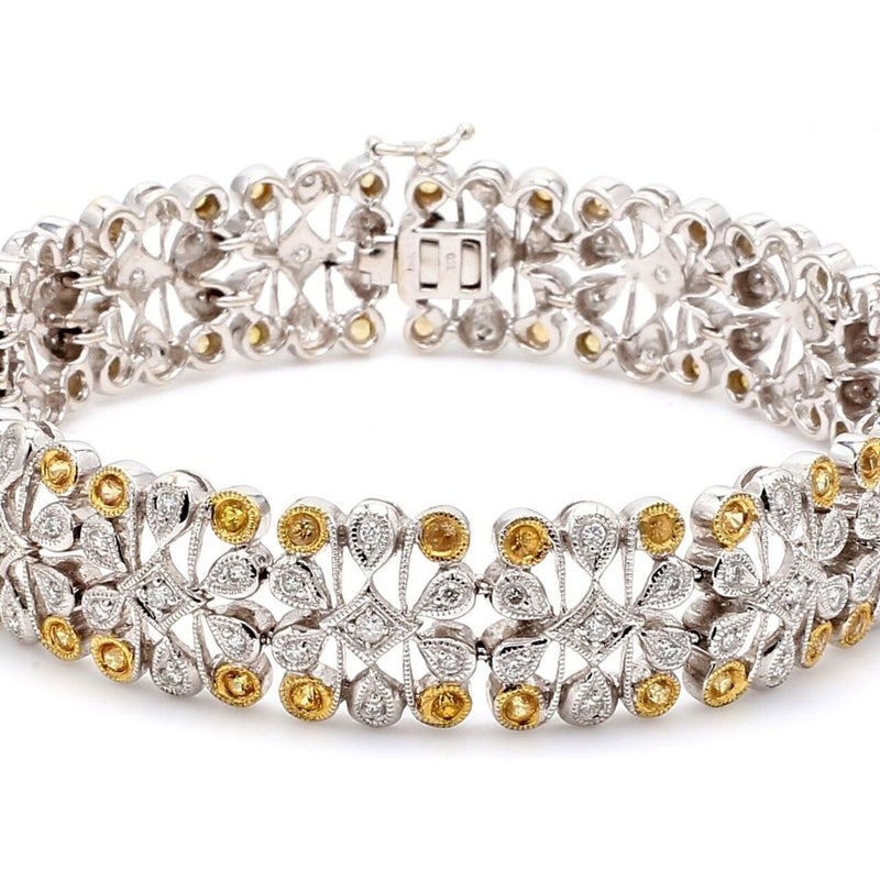 Ninacci Art Deco 18K Two-Tone Bracelet with Round Diamonds & Yellow Sapphires - 1.36 Carat Total Diamond Weight