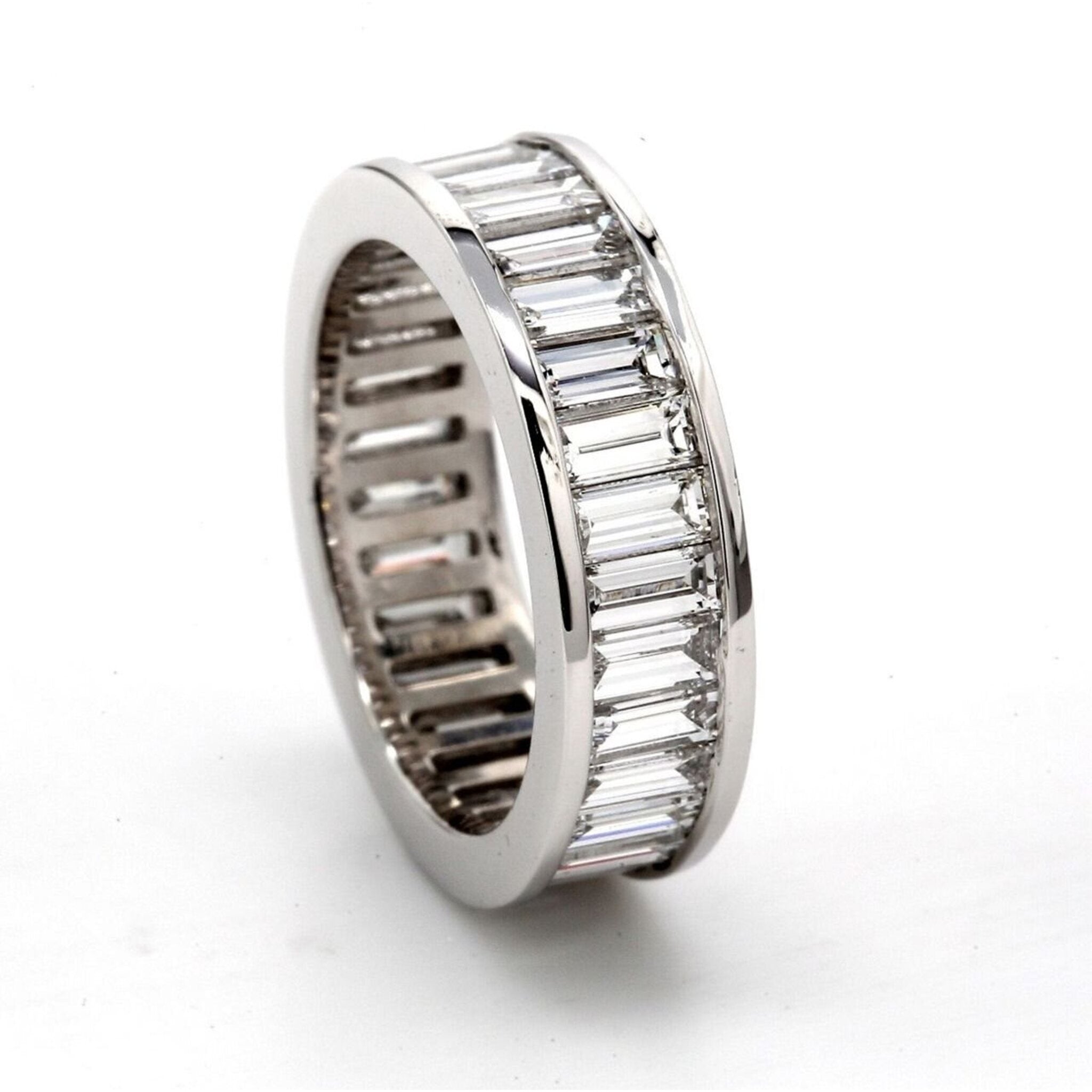 Ninacci Platinum 3.89 Carats Channel Set Emerald Cut Diamond Eternity Band - Size 5.0