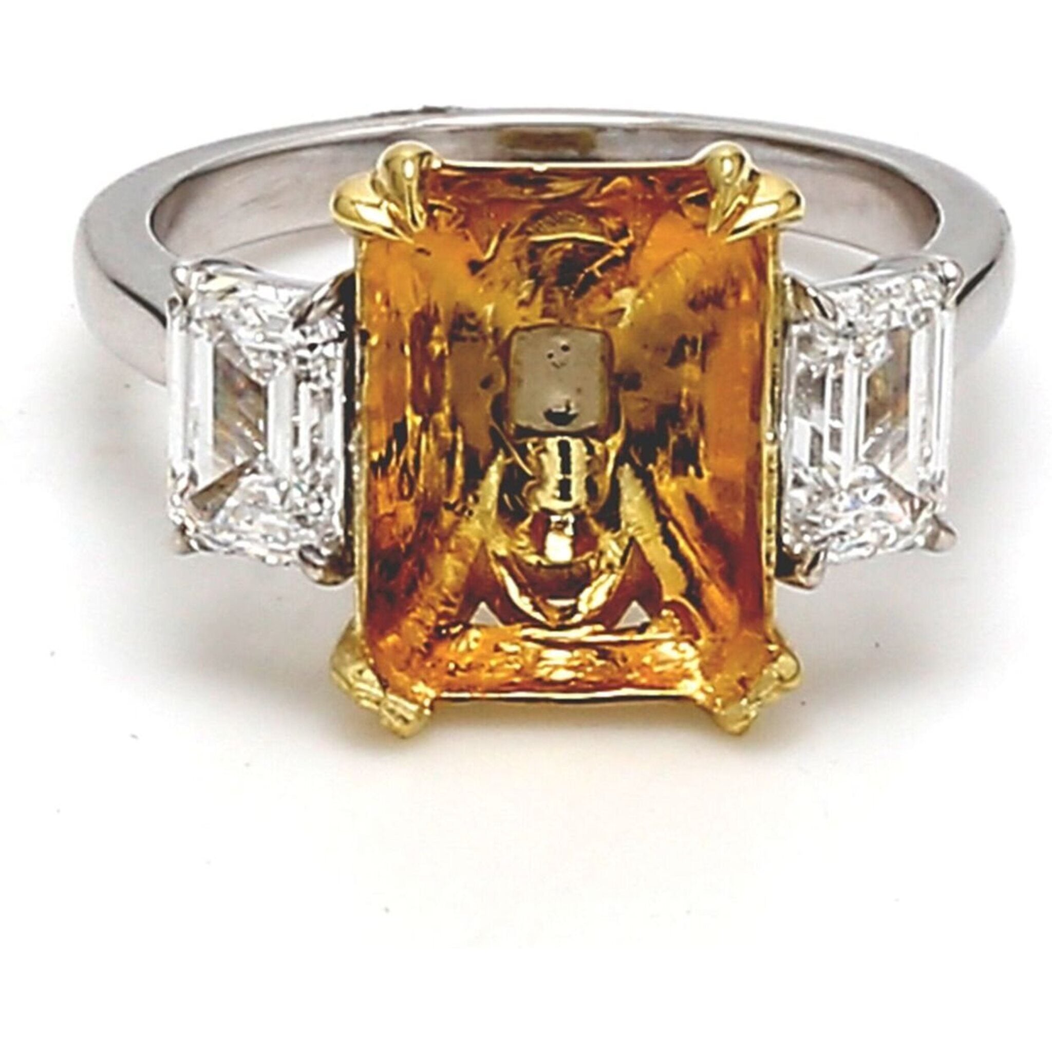 At its heart lies a GIA certified D/VS2 emerald cut diamond, a dazzling centerpiece that captures the essence of perfection. Flanking this radiant gem are two equally stunning emerald cut diamond sides, creating a harmonious trio that symbolizes love, commitment, and enduring beauty. With a total diamond weight of 1.42 carats, this ring shimmers with unparalleled brilliance.