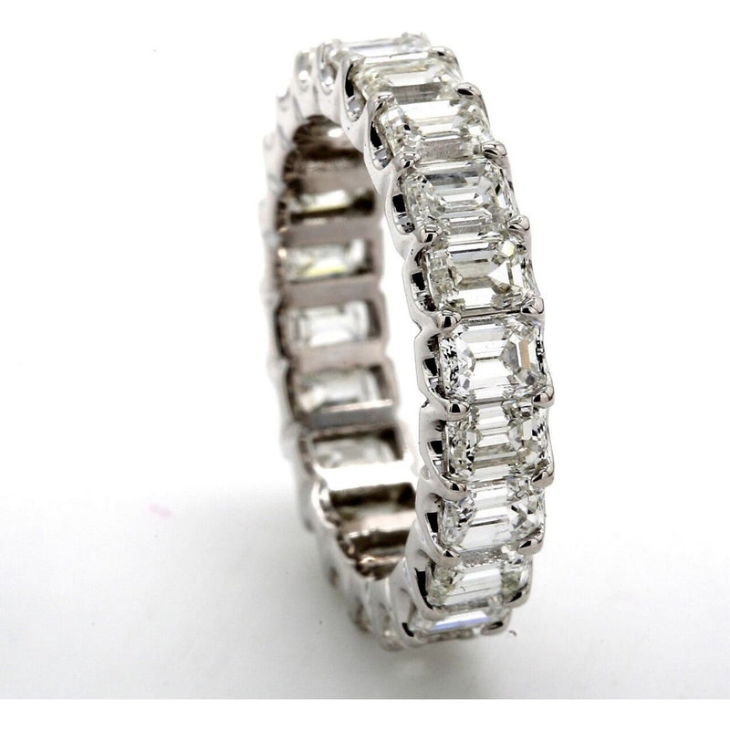 Ninacci Platinum 4.29 Carats Emerald Cut Diamond Eternity Band - Size 5.5