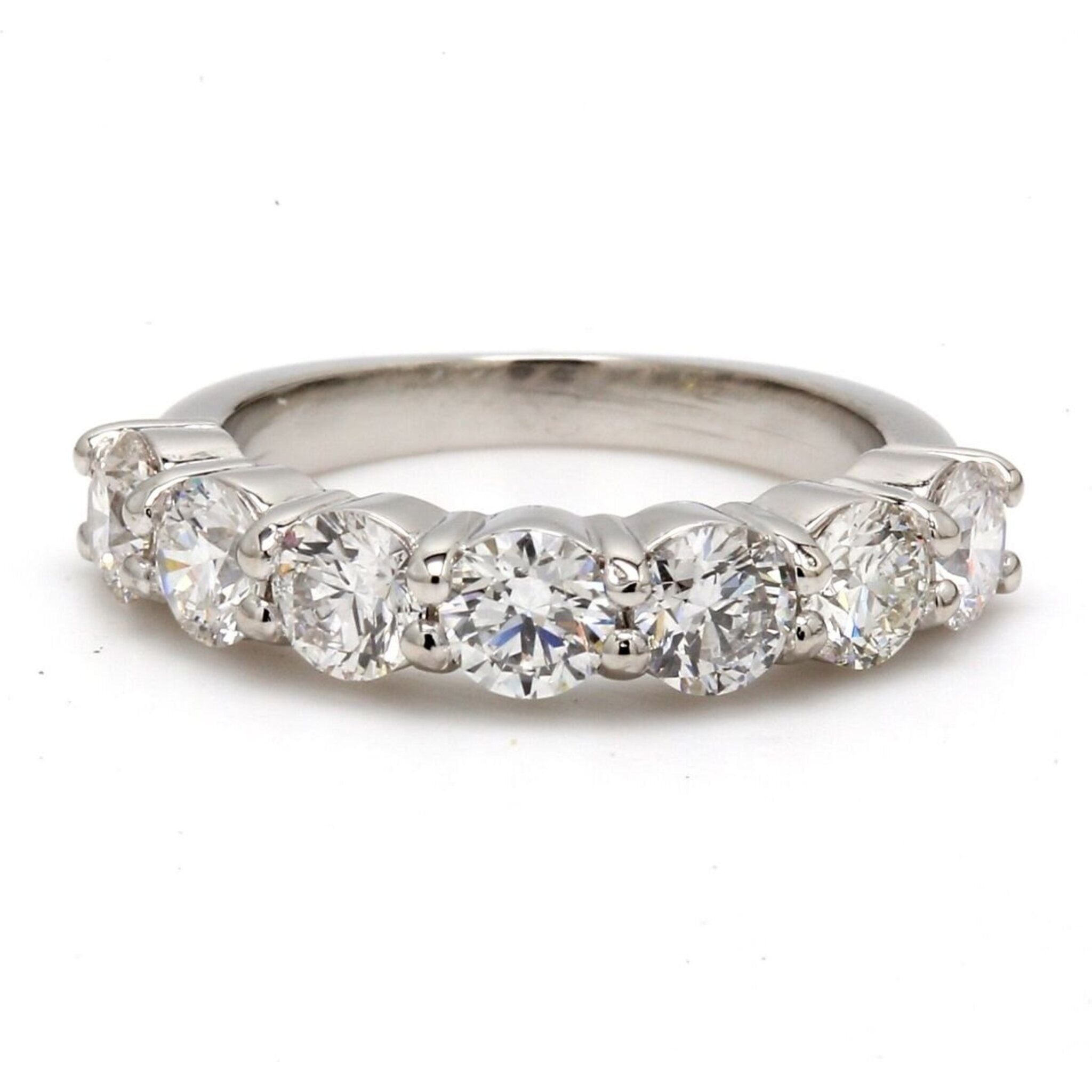 Indulge in the exquisite allure of this 7-stone band in platinum, adorned with prong-set round diamonds that sparkle with a captivating brilliance. With a total diamond weight of 1.46 carats, this band is a testament to timeless elegance. The design is both classic and contemporary, making it an ideal choice for fashion-forward women who appreciate the finer things in life.