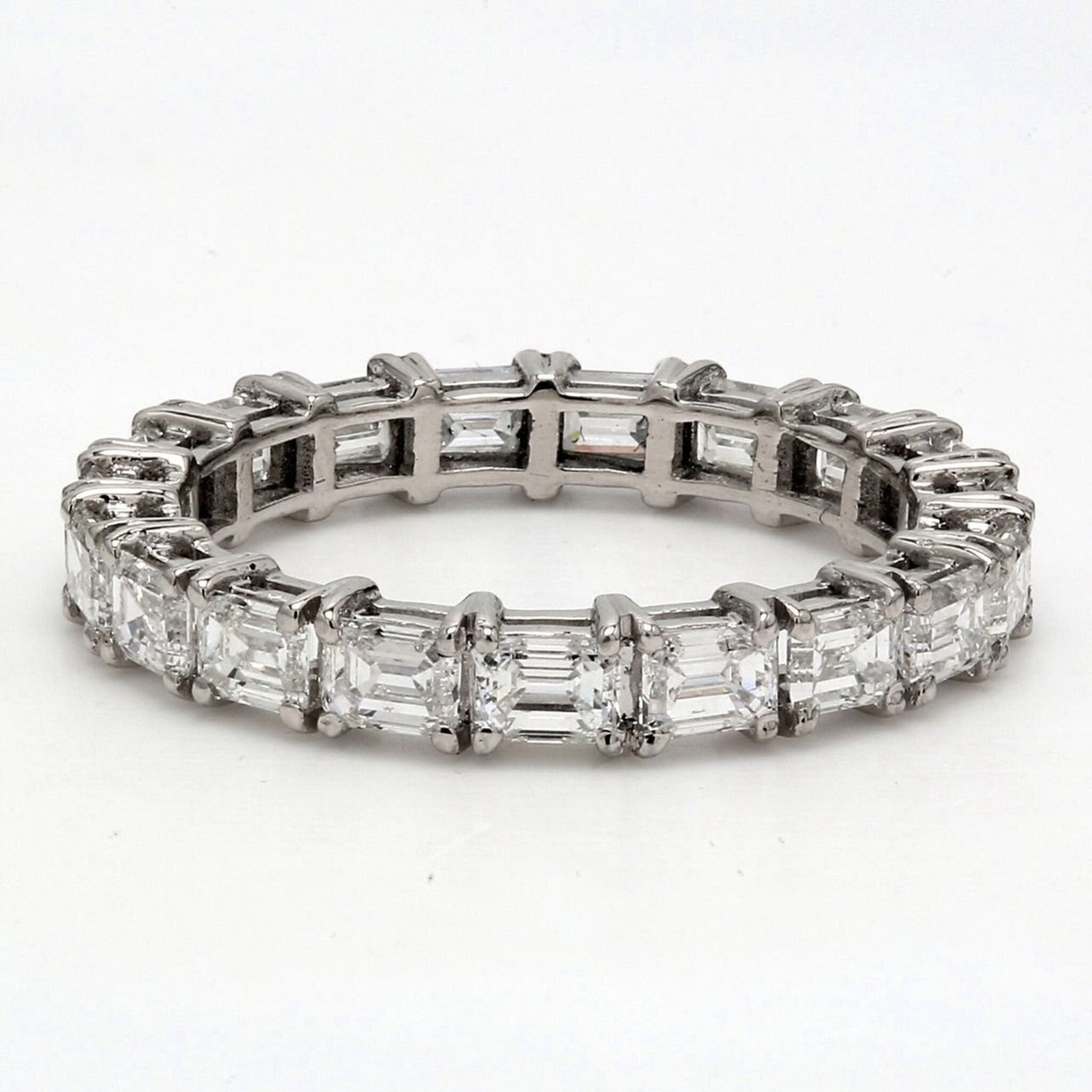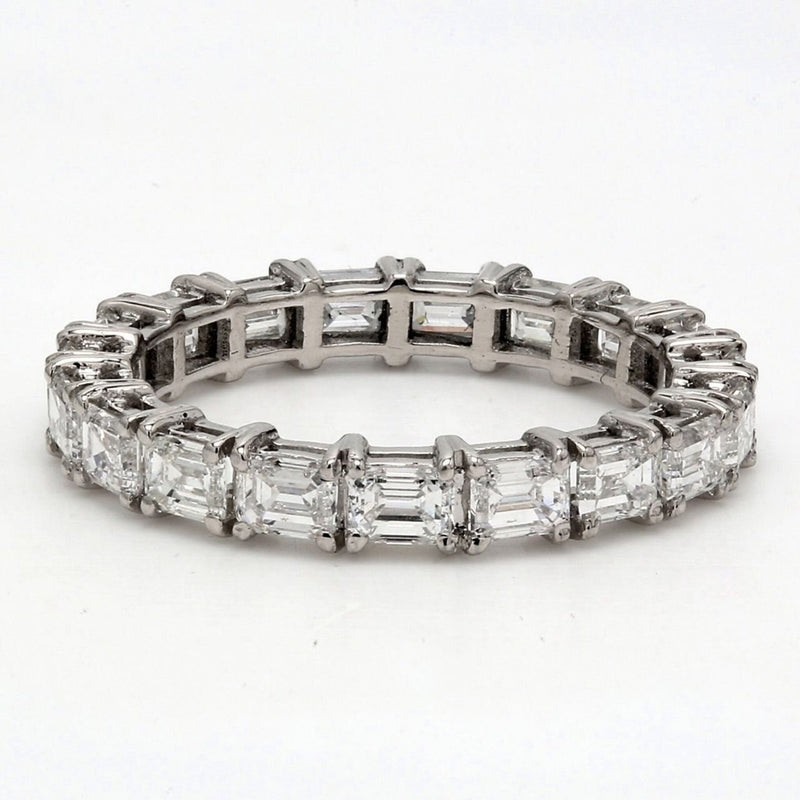 Ninacci Platinum East to West Eternity Band with 2.62 Carats Emerald Cut Diamonds - Size 6