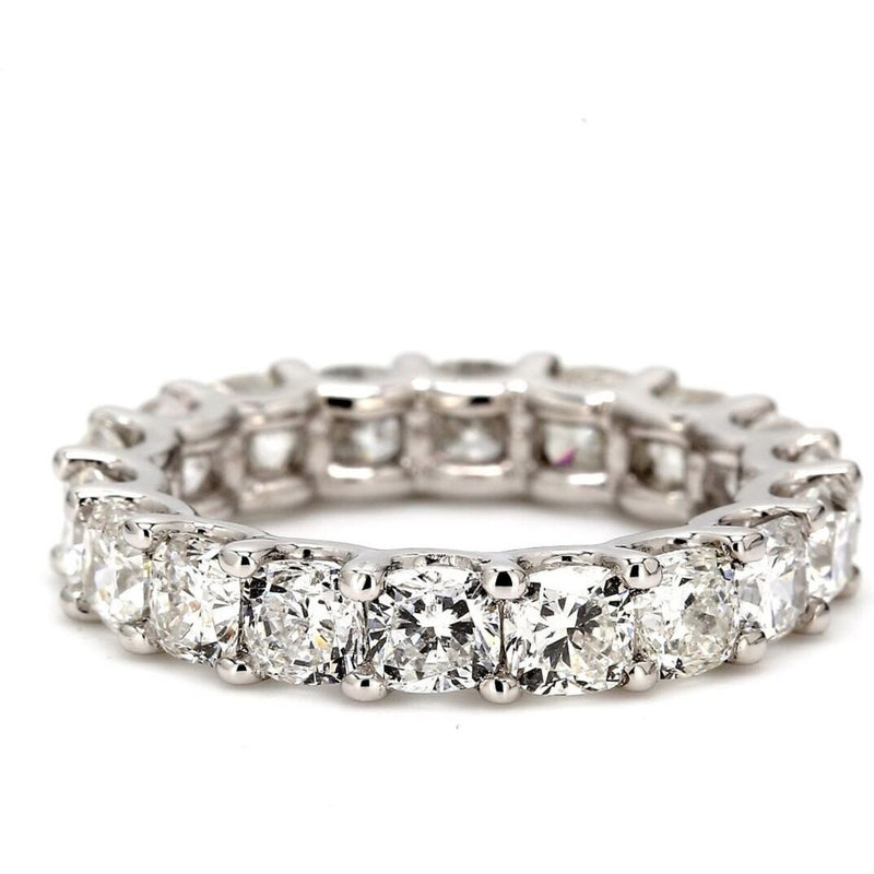 Ninacci Platinum Eternity Band with U-Prong Set Cushion Cut Diamonds - 5.54 Carat Total Diamond Weight - Size 6.0