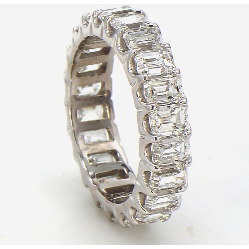Ninacci Platinum Eternity Band with U-Prong Set Emerald Cut Diamonds - 4.21 Carat Total Diamond Weight - Size 5.0