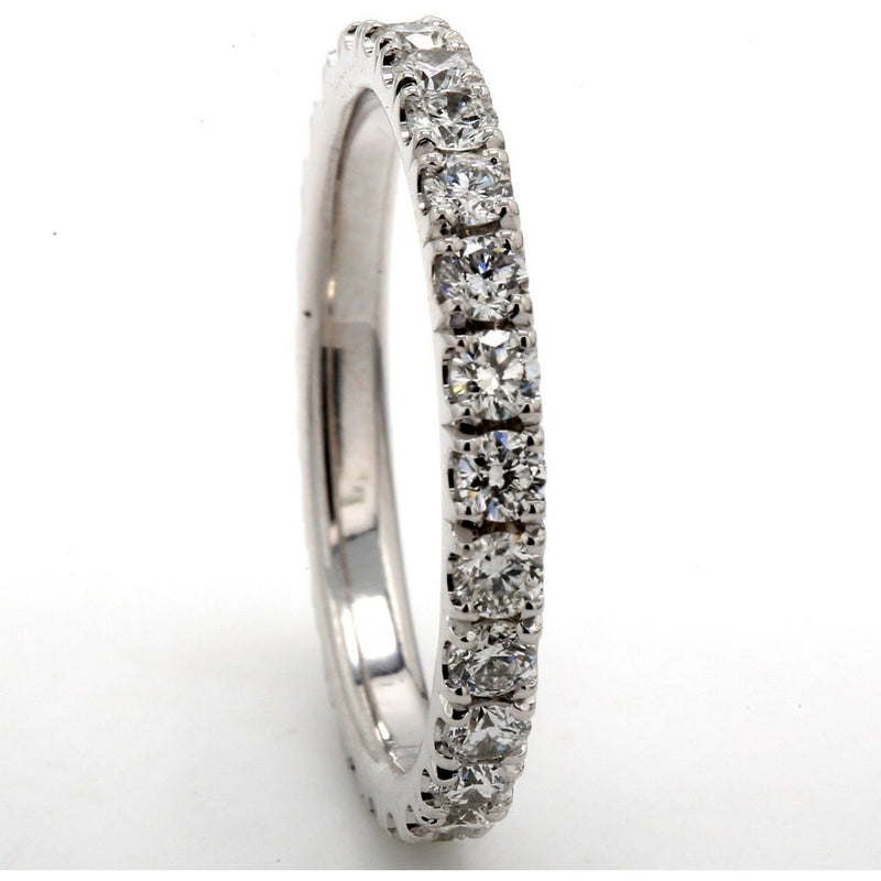 Indulge in the timeless elegance of Ninacci's platinum eternity band, a symbol of eternal love and commitment that will grace your finger with unparalleled beauty. This exquisite piece features a shared prong setting adorned with a breathtaking ensemble of 26 round diamonds, totaling an impressive 1.83 carats.