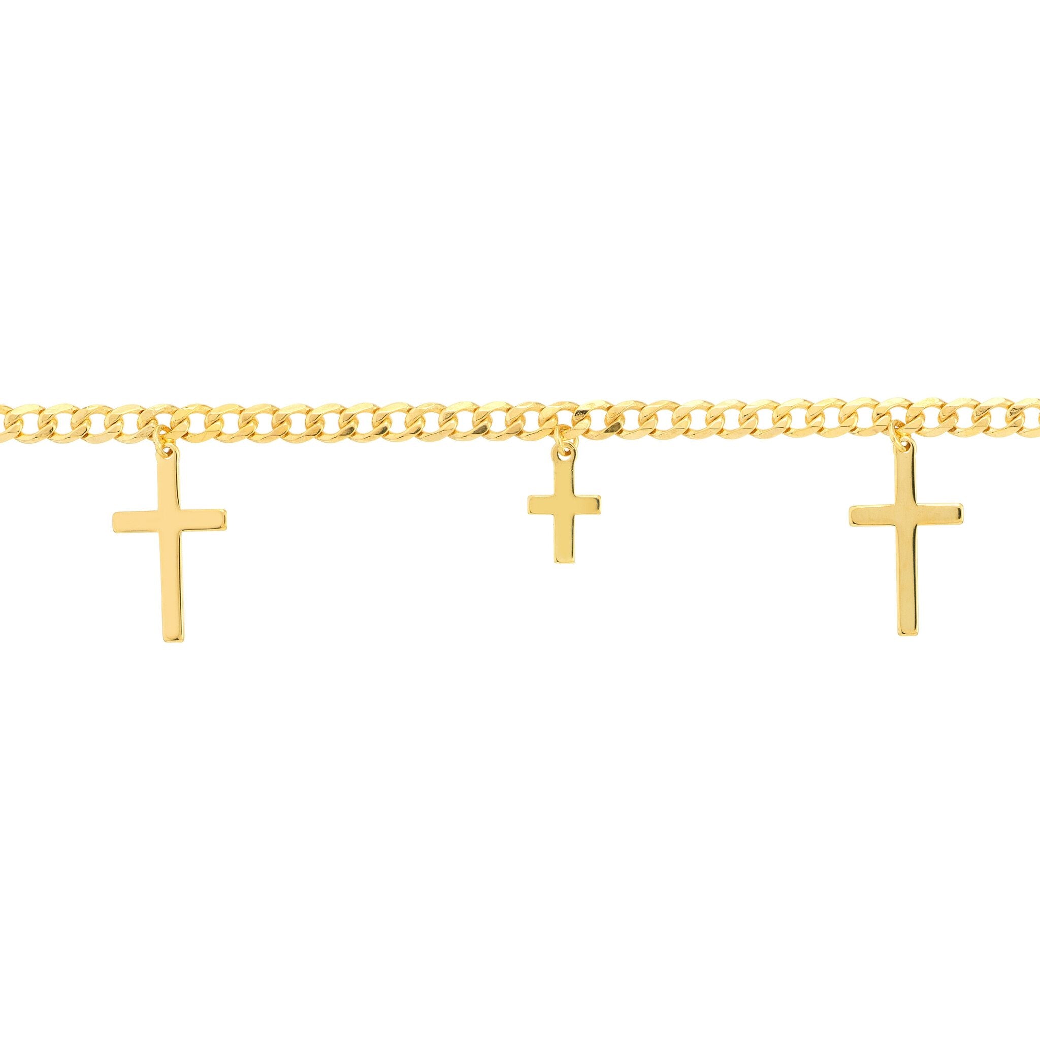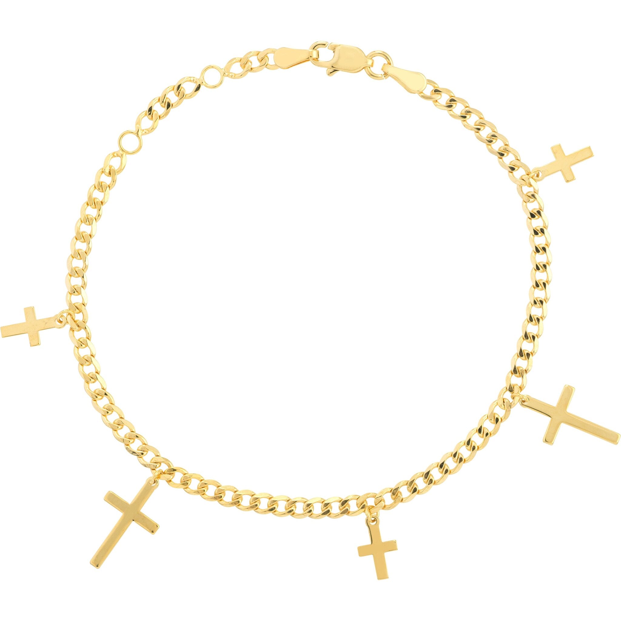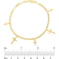Olas d'Oro 7.25" Bracelet - 14K Yellow Gold Cross Dangles Curb Chain Adjustable Bracelet
