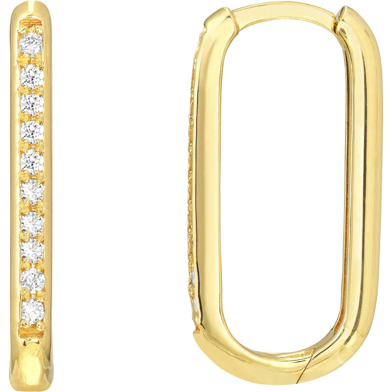 The 14-karat yellow gold metal enhances the radiance of the diamonds, creating a warm and inviting glow that complements your skin tone. The hinge closure ensures easy wear, making these earrings a convenient yet stylish choice for any occasion. With an average weight of 2.43 grams, they are lightweight and comfortable to wear all day long.