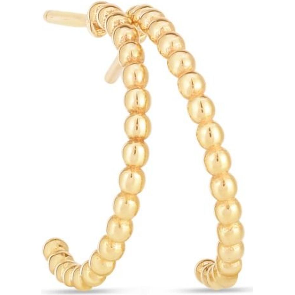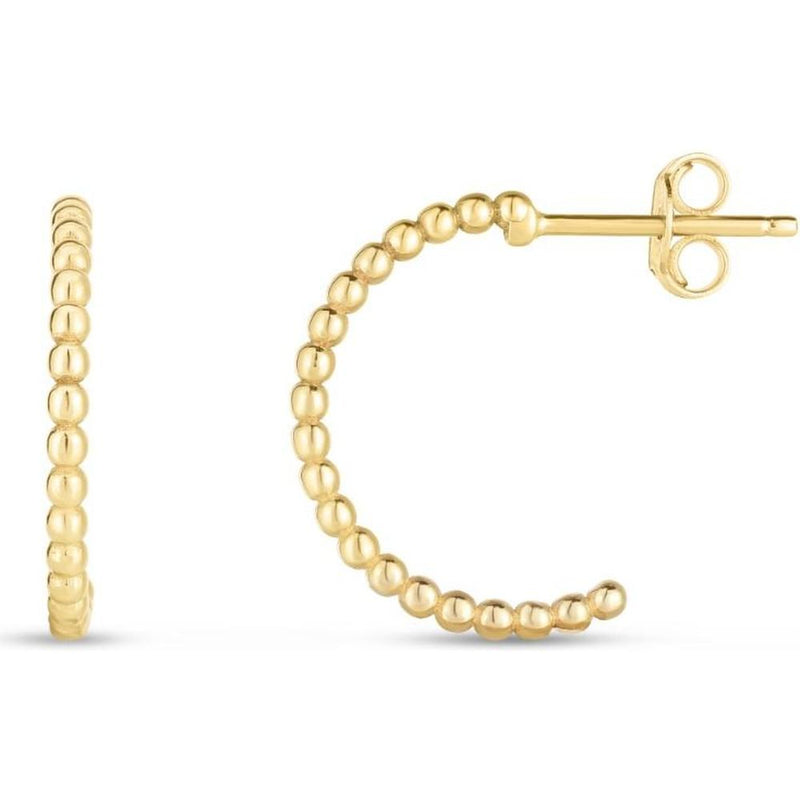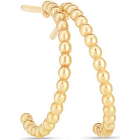 There’s something so effortlessly enchanting about these 14K Yellow Gold Popcorn C-Hoops from Phillip Gavriel, capturing the heart with their playful yet refined style. Each earring is a harmonious arrangement of delicately rounded, bead-like details—creating a “popcorn” effect that dances with light and adds dimension from every angle. These hoops offer the warmth of polished 14K yellow gold, a metal that radiates a timeless glow, perfect for the modern woman who seeks elegance with a twist of fun. Designed with a push-back clasp, these earrings sit securely, allowing you to embrace life’s moments without a second thought, from morning meetings to evening celebrations.
