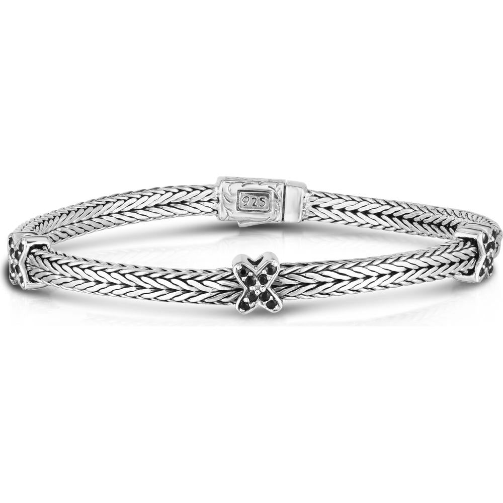 Phillip Gavriel Sterling Silver 7.25" Woven Bracelet with Round Black Sapphires