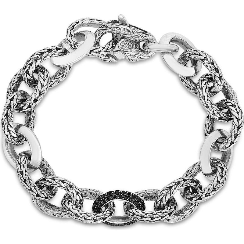Phillip Gavriel Sterling Silver 7.5"Woven Chain Bracelet with Black Sapphire Rounds