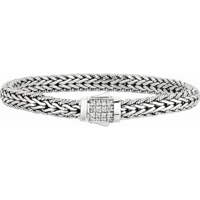 Phillip Gavriel Sterling Silver 8.25" Signature Woven Bracelet with Round White Sapphire-Embellished Lock