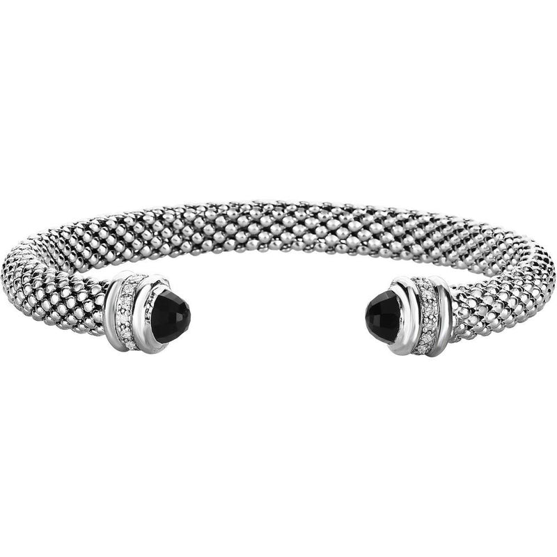 In a world where elegance whispers and luxury meets enchantment, the Sterling Silver Popcorn Gemstone & Diamond Classic Cuff Bangle by Phillip Gavriel awaits its place in your story. Crafted from shimmering sterling silver, this bracelet wraps around your wrist like a gentle embrace, adorned with a signature "popcorn" texture that sparkles with every turn. At each end, dome-shaped briolette black onyx gems crown this piece with their mysterious allure, reflecting shadows of deep midnight skies. A delicate ribbon of diamonds encircles each onyx, adding a touch of stardust to this celestial design.