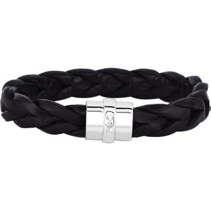 Phillip Gavriel Sterling Silver Men's Braided Leather Bracelet with Polished Clasp - 8.5"
