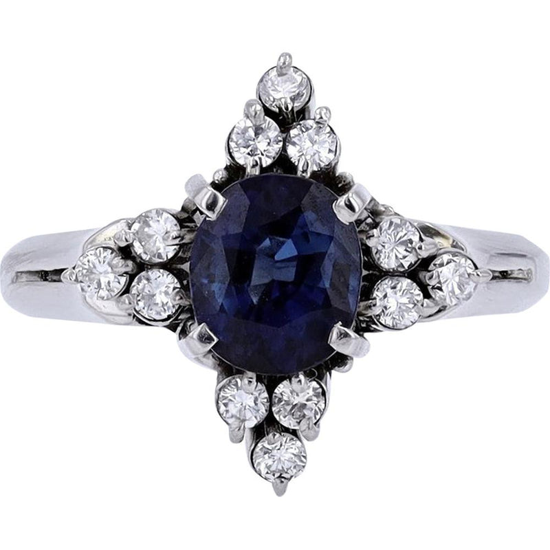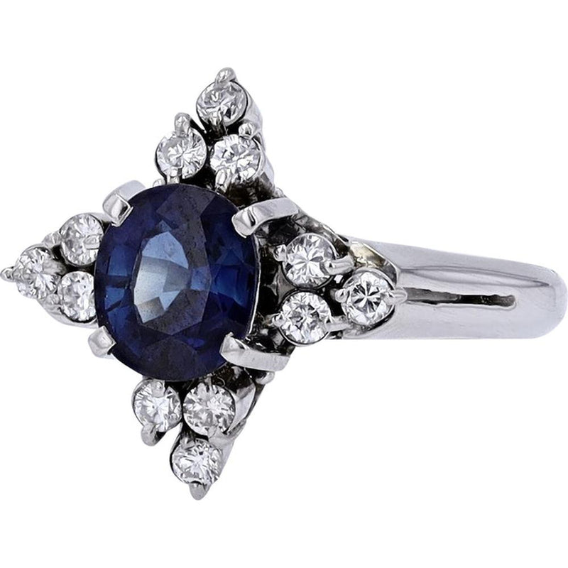Platinum 1.34 Carat Sapphire Center Ring with Diamond Accents - Size 6