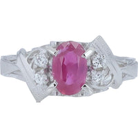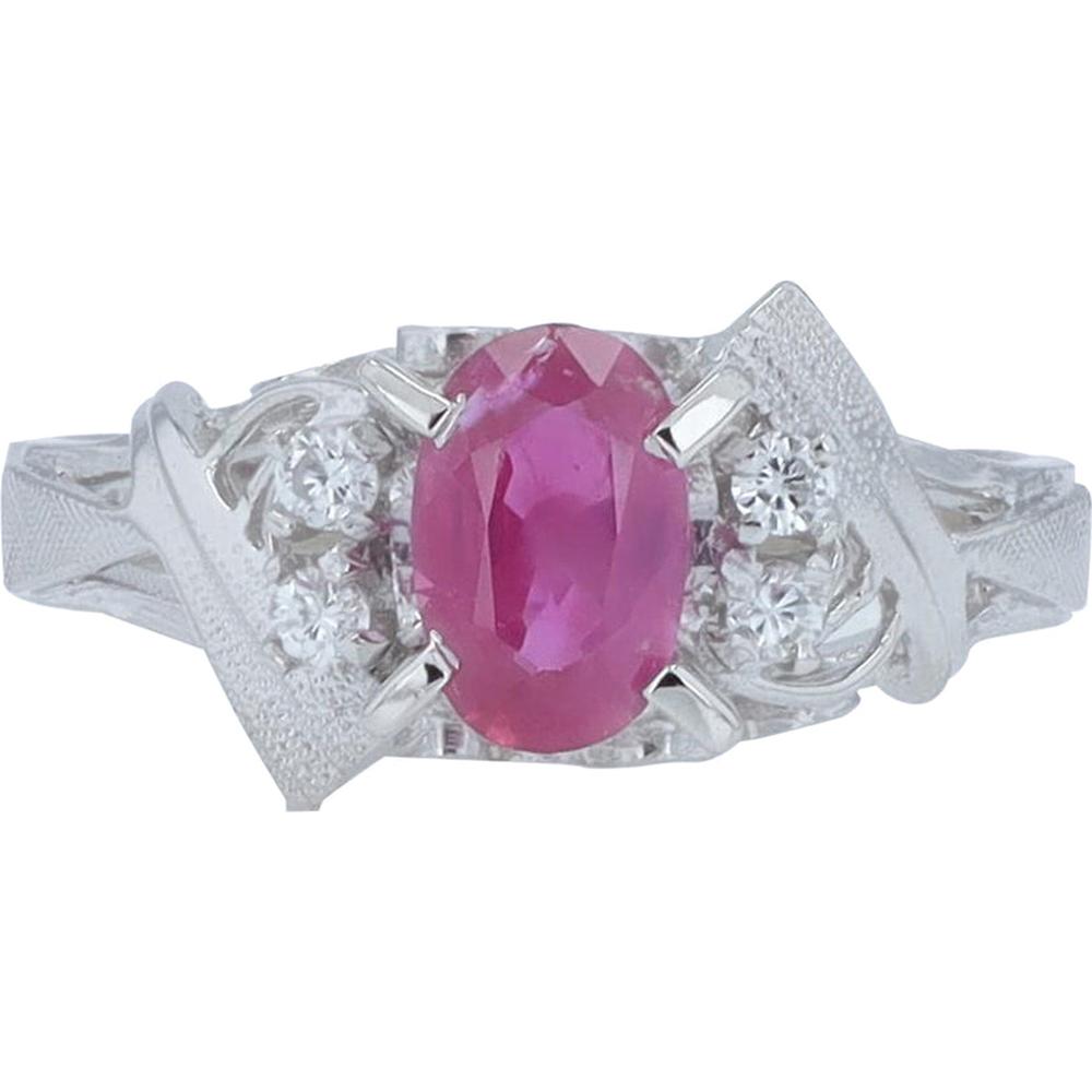 Platinum Ruby Ring with Diamond Accents - 0.72 Carat Ruby, 0.05 Carat Diamonds