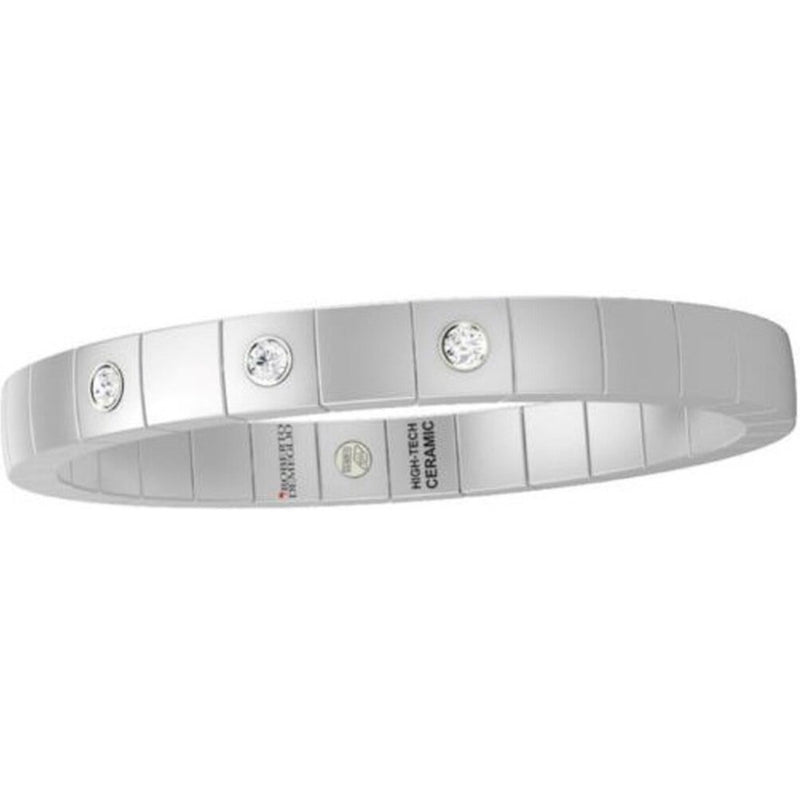 Immerse yourself in the artistry of the exquisite White Ceramic Stretch Bracelet with 3 Diamond Bezels in 18K White Gold. Crafted with meticulous attention to detail, this piece from the Scacco collection is a fusion of art and elegance, designed to captivate the modern woman who appreciates the finer things in life.