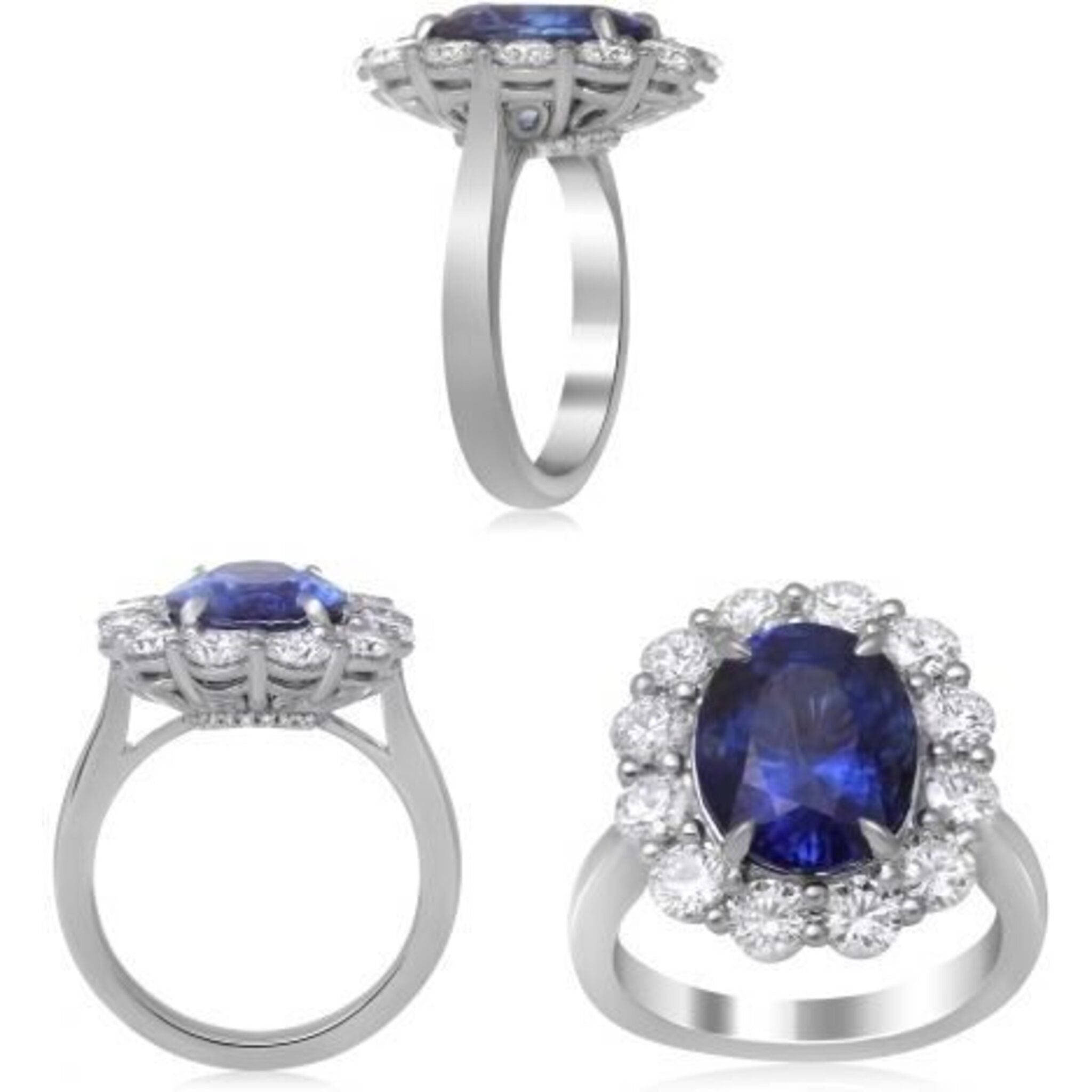 Elevate your style with the exquisite Oval Sapphire Ring from Roman & Jules. Crafted in luxurious platinum, this ring is a testament to timeless elegance and sophisticated design. The centerpiece features a mesmerizing 1.73-carat oval sapphire, certified by GIA for its exceptional quality and vivid hue. Encircling the sapphire are 0.05-carat round diamonds, adding a touch of brilliance and allure to the piece. The shank of the ring is adorned with 7.20 carats of sparkling sapphires, creating a captivating contrast against the white metal.