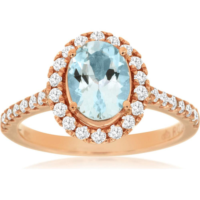 Inspire with the infusion of innovation and intuition in this mesmerizing 14K Rose Gold Aquamarine & Diamond Ring from Royal. Picture yourself adorning your finger with the ethereal beauty of a 1.10-carat oval aquamarine, its tranquil blue hues reminiscent of the ocean's depths, cradled delicately in a warm embrace of rose gold. Surrounding this captivating center stone are twinkling diamonds, totaling 0.50 carats, adding a touch of brilliance and sophistication to the piece.