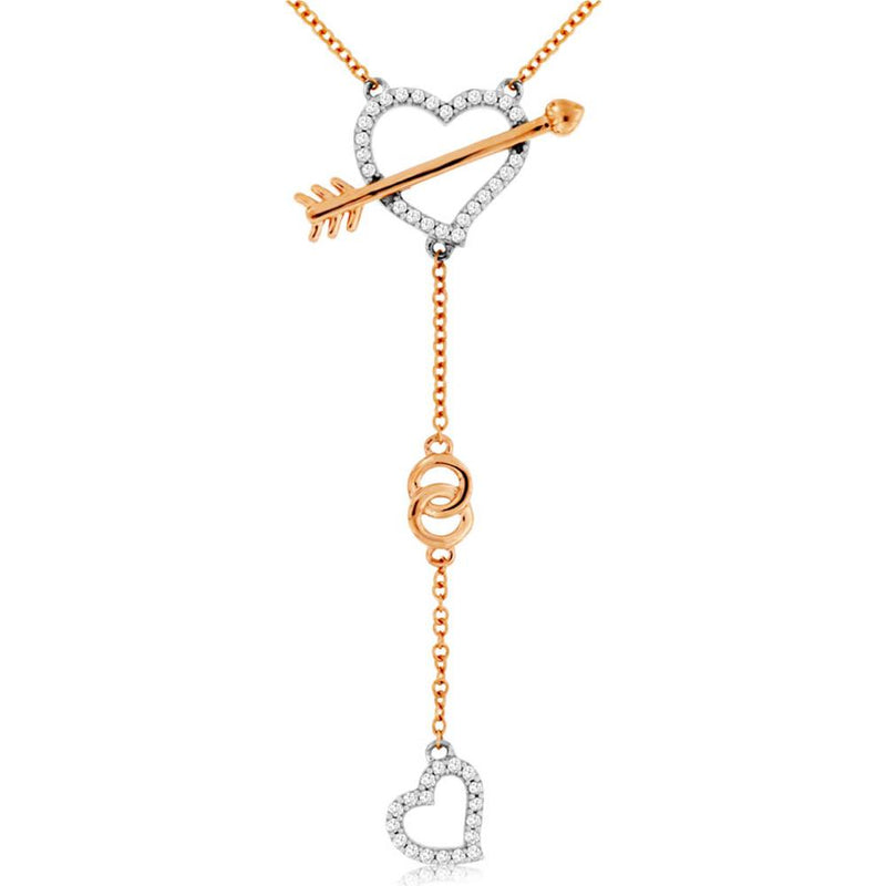 Royal 14K Rose Gold Diamond Heart Arrow Necklace - 0.25 Carat Total Diamond Weight