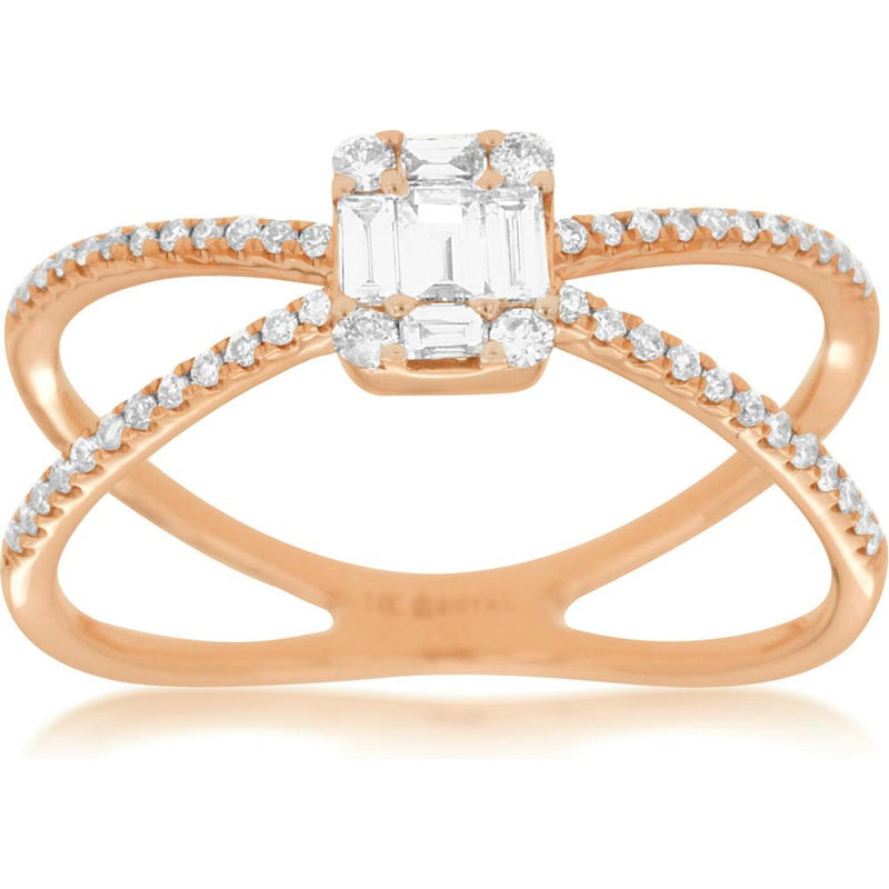 Royal 14K Rose Gold Diamond Ring with Baguette Accents - 0.37 Carat Total Diamond Weight