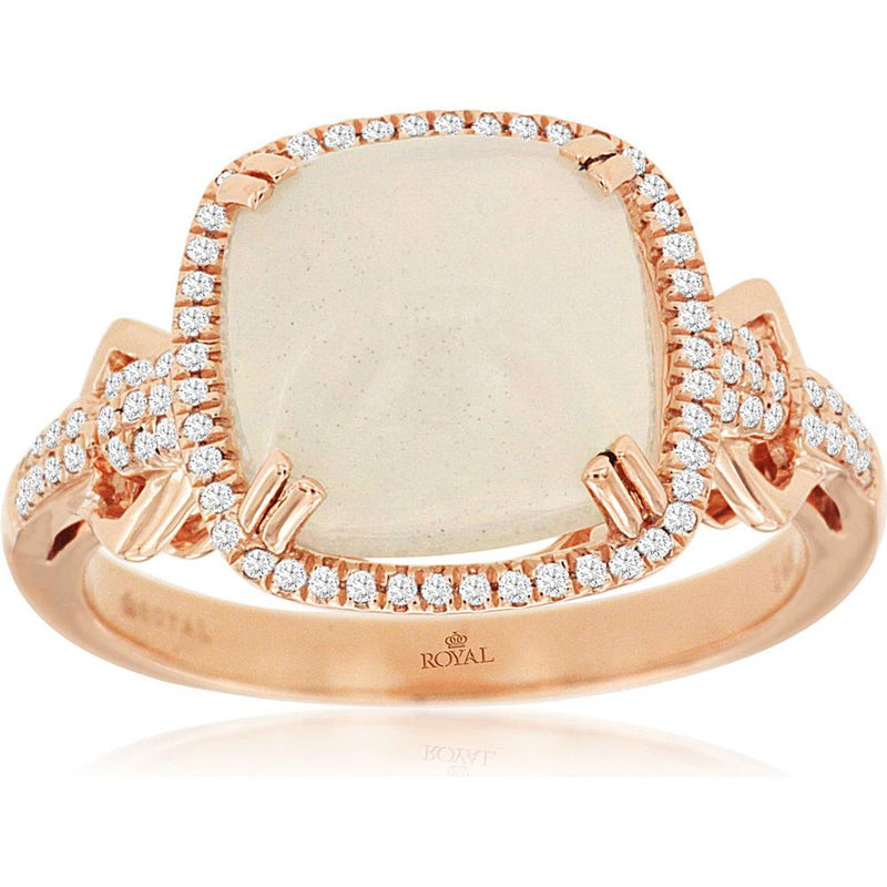 Royal 14K Rose Gold Ring with Cushion Cut Opal and 0.20 Carat Diamond Halo - 2.60 Carat Total Opal Weight