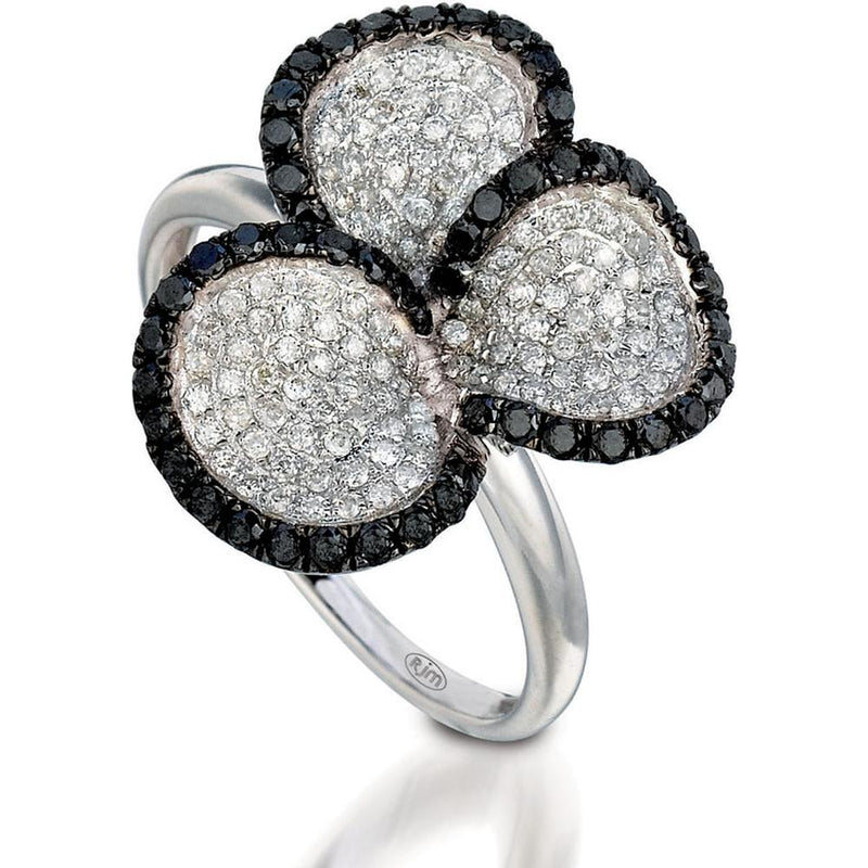 Royal 14K White Gold Black Diamond Clover Ring - Elegant Floral Design