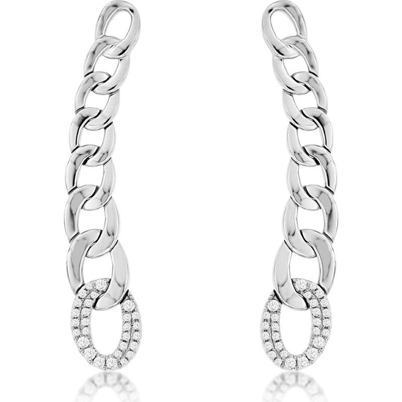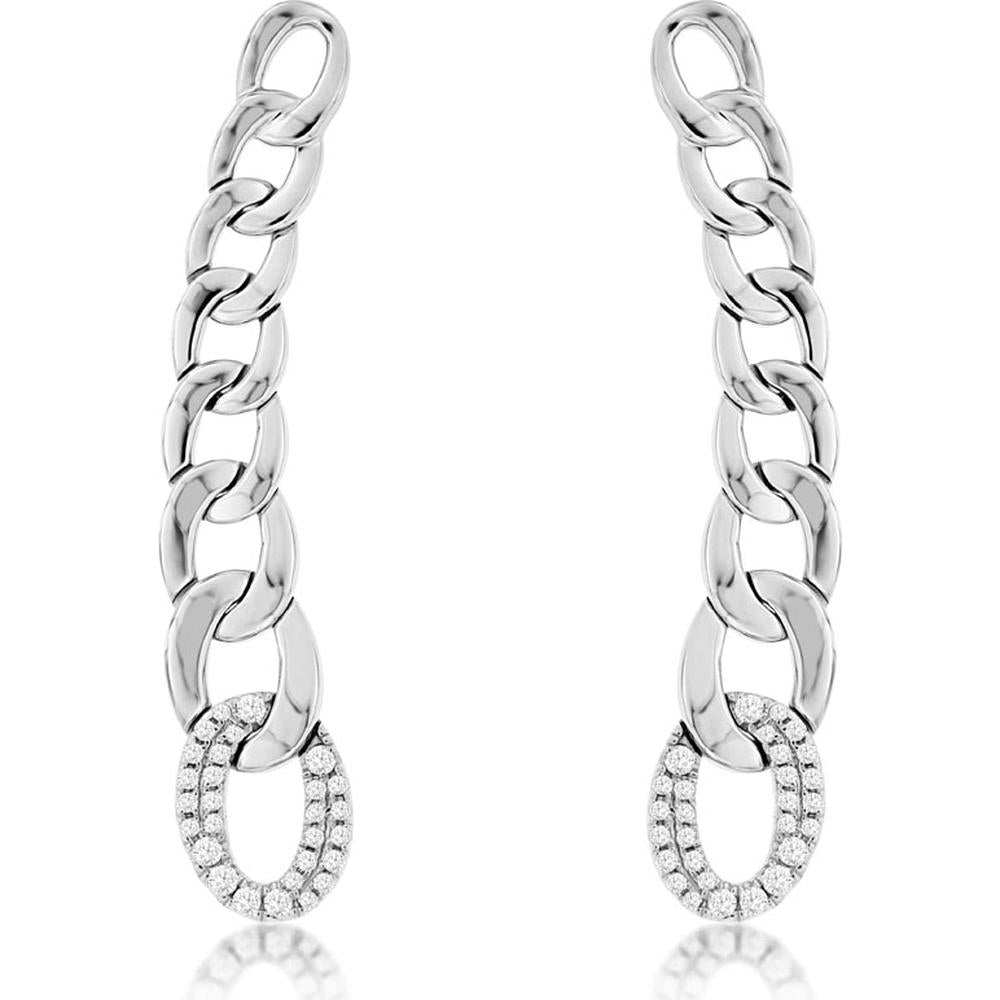 The main attraction of these earrings is the scintillating diamonds, totaling 0.20 carats, which adorn each piece with unparalleled radiance. Set against the backdrop of gleaming white gold, the diamonds shimmer with every movement, casting a mesmerizing sparkle that captures the eye. Their classic yet contemporary design makes them a versatile addition to any jewelry collection, perfe carat for both formal occasions and everyday wear.