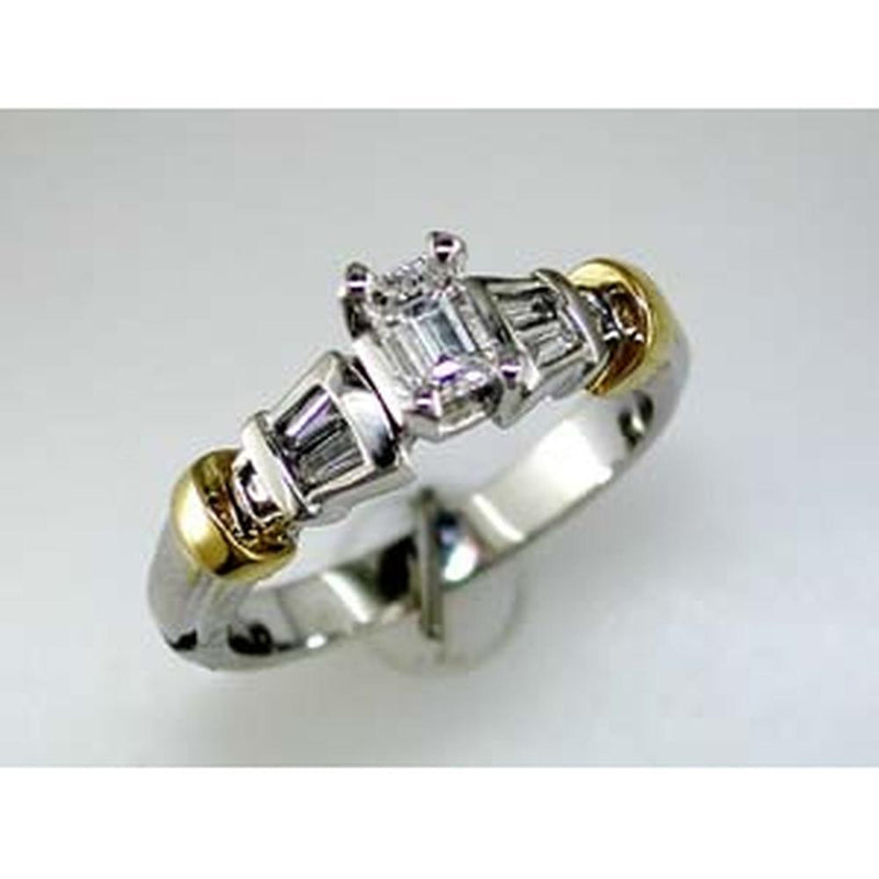 Flaunt the finesse of timeless elegance with our 14K White Gold Diamond Engagement Ring. Delicately crafted to capture hearts, this ring features a captivating 0.35 carat emerald-cut center diamond, exuding brilliance and sophistication. Embraced by the shimmering glow of 14K white gold, it's adorned with an additional 0.20 carats of baguette and round diamonds, adding a touch of allure and charm to its design.