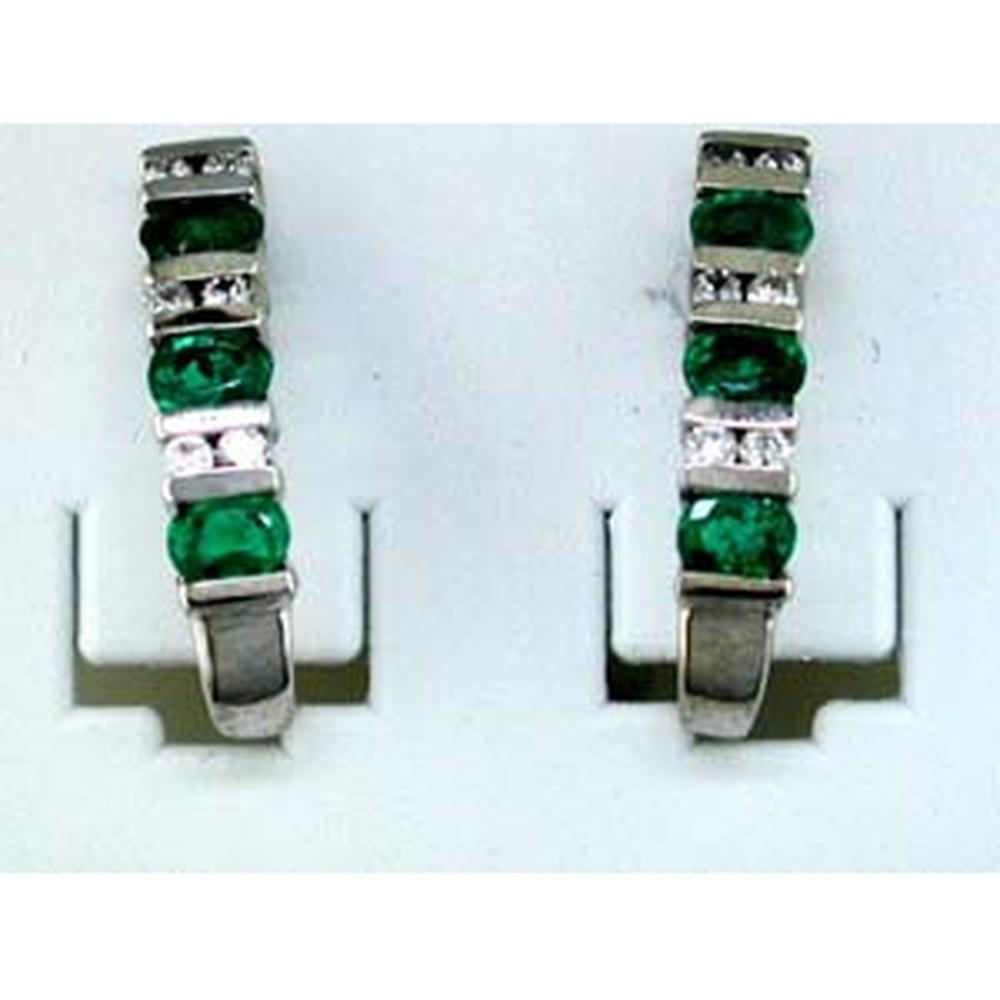 Royal 14K White Gold Emerald and Diamond Hoop Earrings - 1.12 Carat Emerald, 0.28 Carat Diamond Total